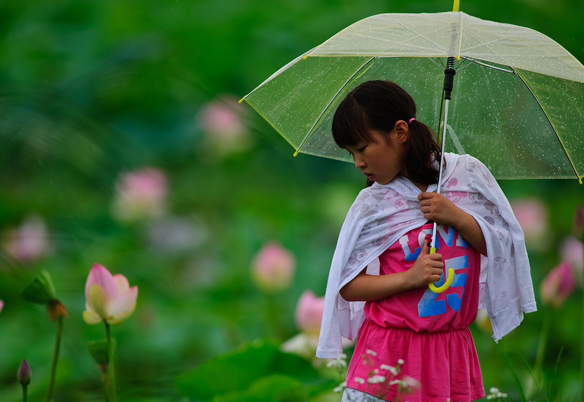 우중의 연밭에서 미래의 모델을 만났습니다