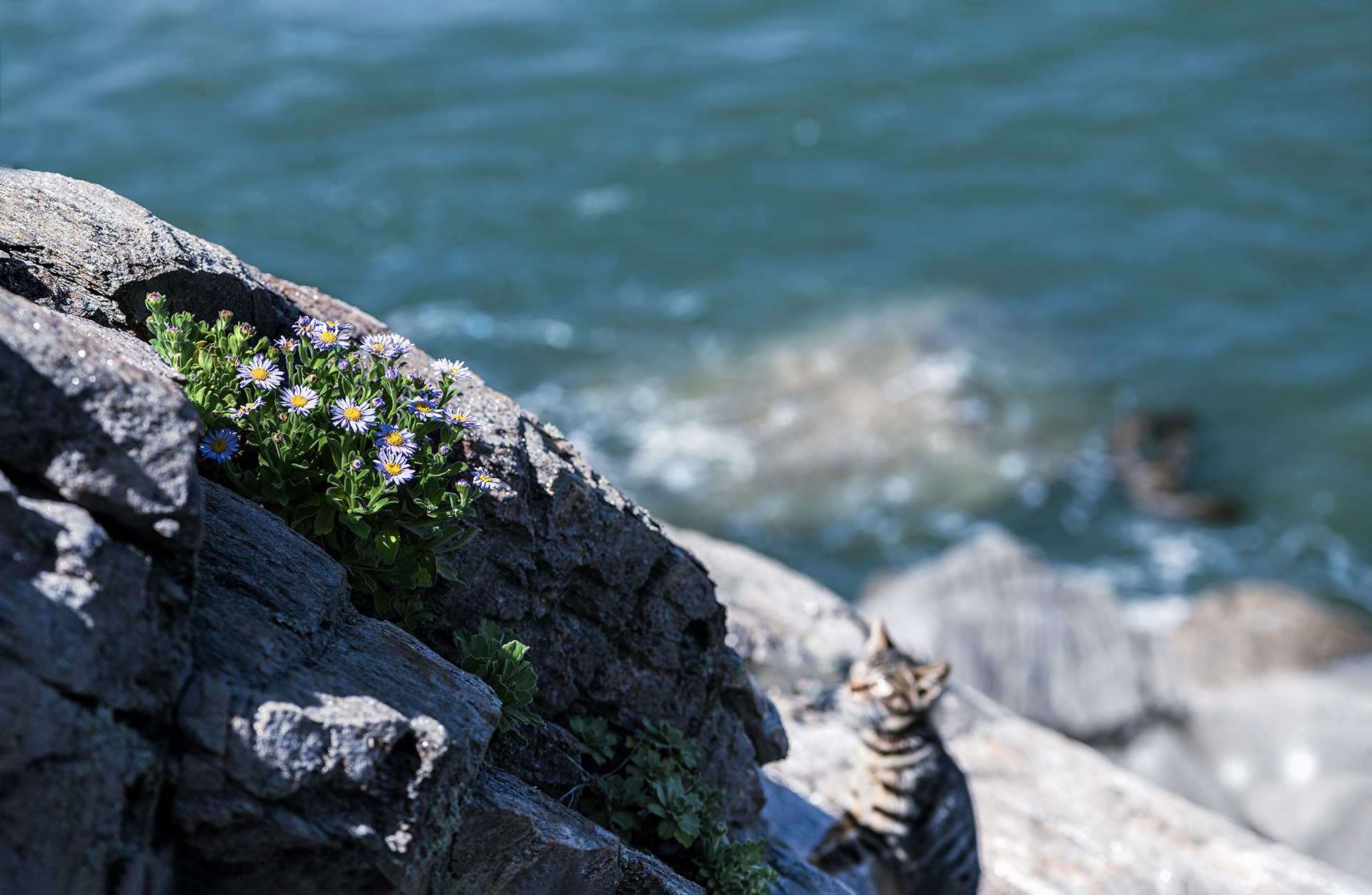 길냥이의 하루는 낚시꾼을 기다리는게 일상이 되었나 봅니다.