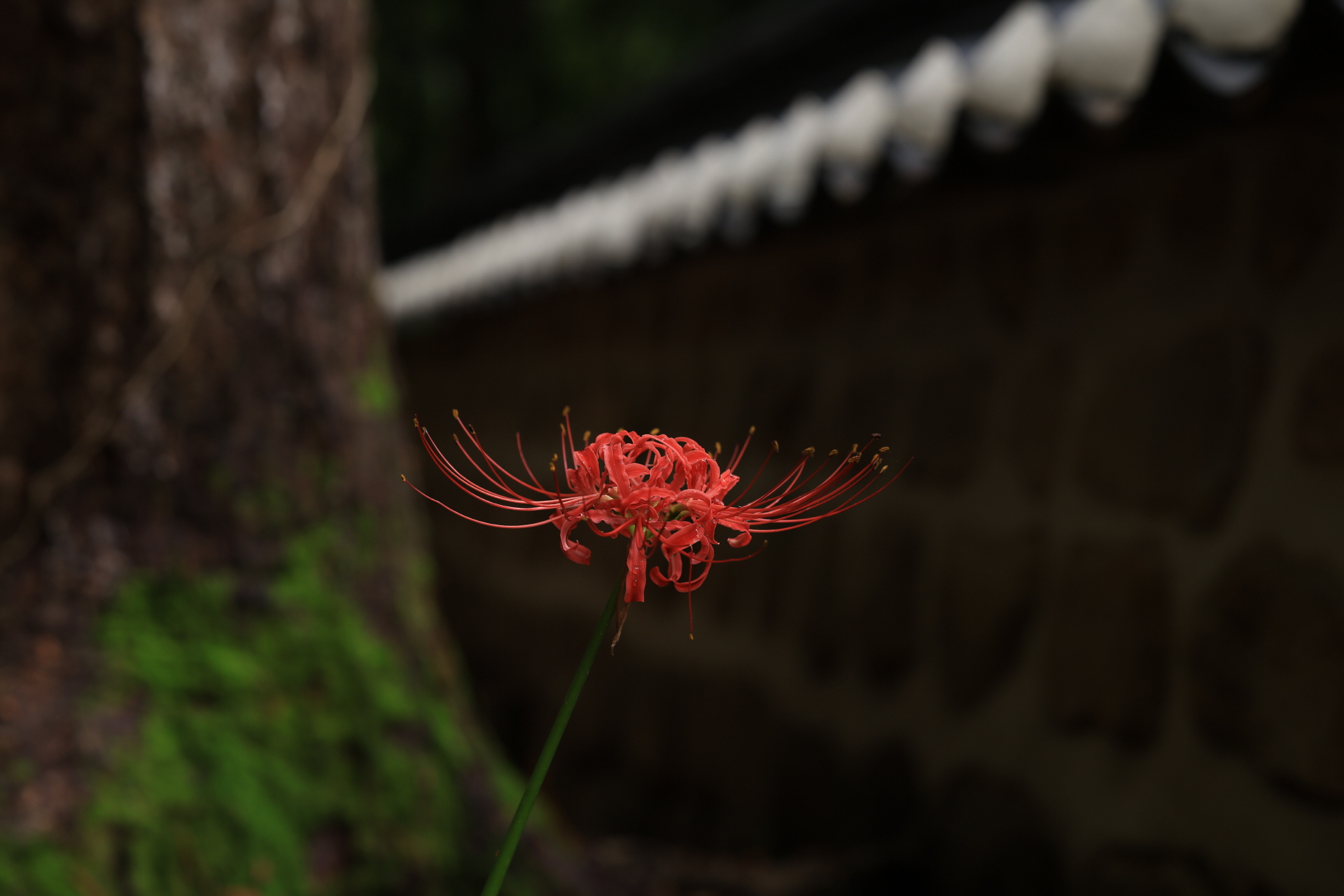 그 많은 꽃무릇 무리를 마다하고 홀로 담장밑 그늘에 있는 너에게 말을 걸어본다