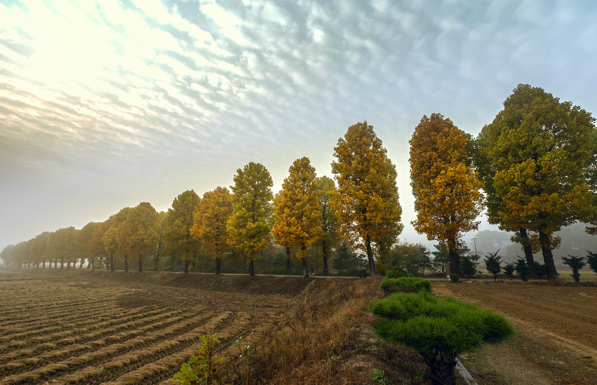 하늘에 펼쳐진 구름 무늬는 마치 붓으로 그린 듯한 질감을 줍니다.