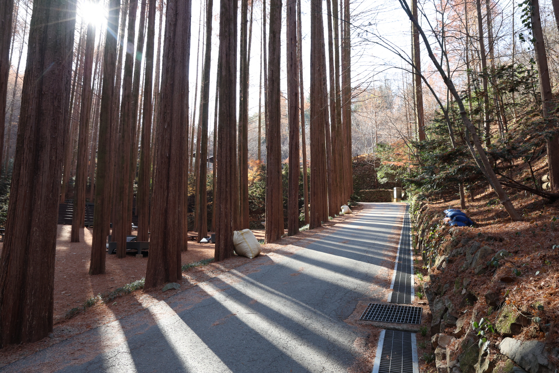 곧게 솟은 나무들 사이로 햇살이 조용히 스며들며,