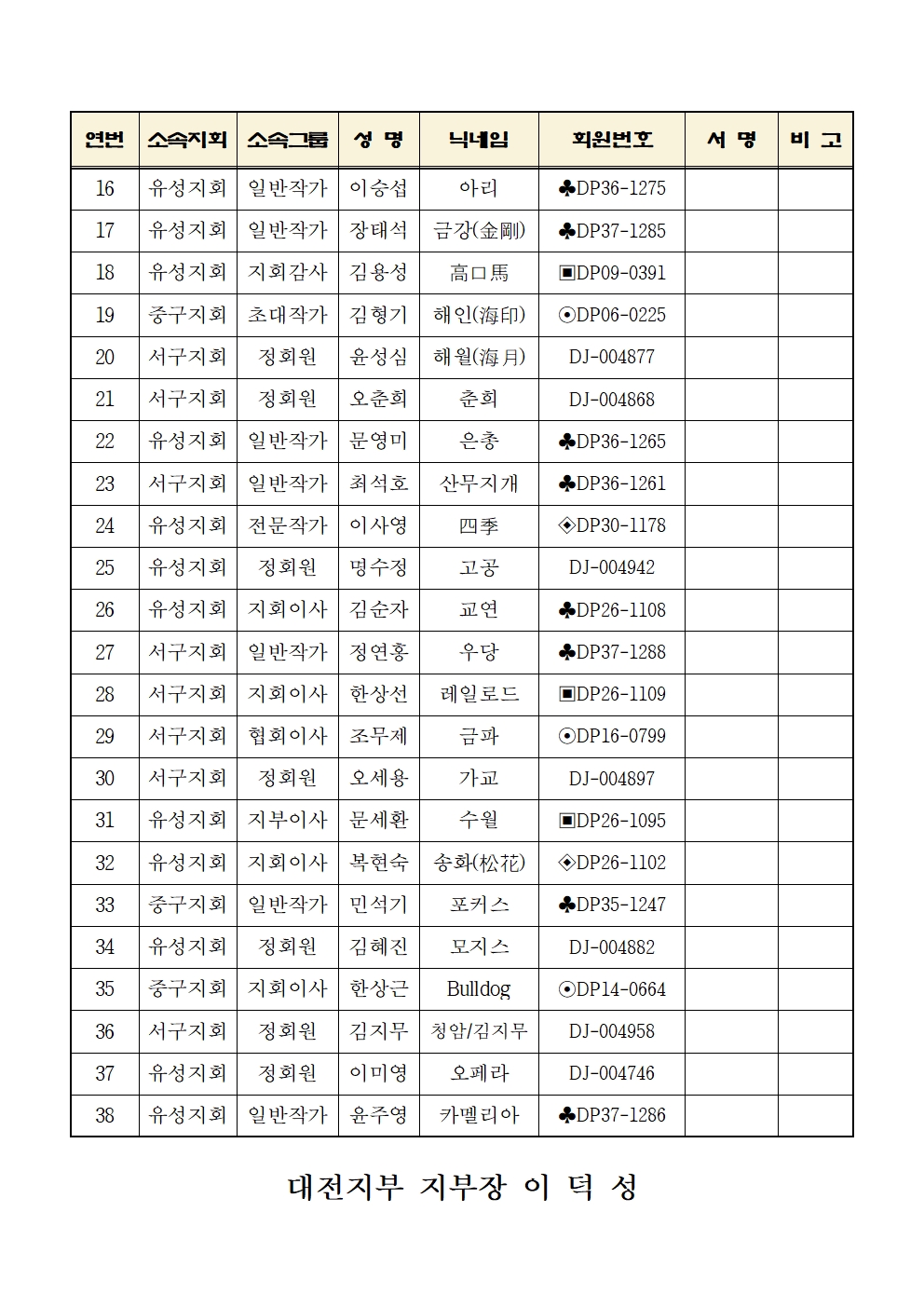[연수실] 장노출 6개월반 8차 출사 참석자 명단
