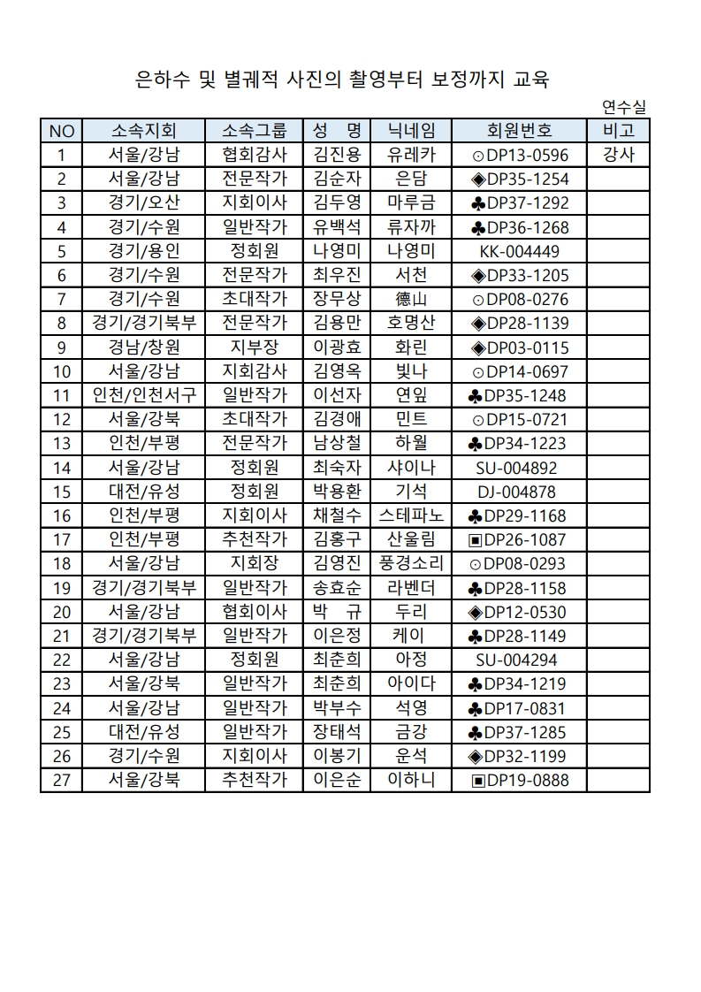 [연수실] 은하수 및 별궤적 사진의 촬영부터 보정까지 교육 1차 출사