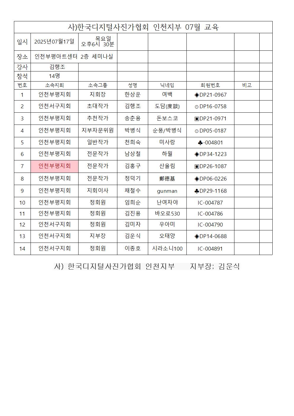 [인천지부 ] 2025년7월 정기 교육에 따른 포인트신청합니다.