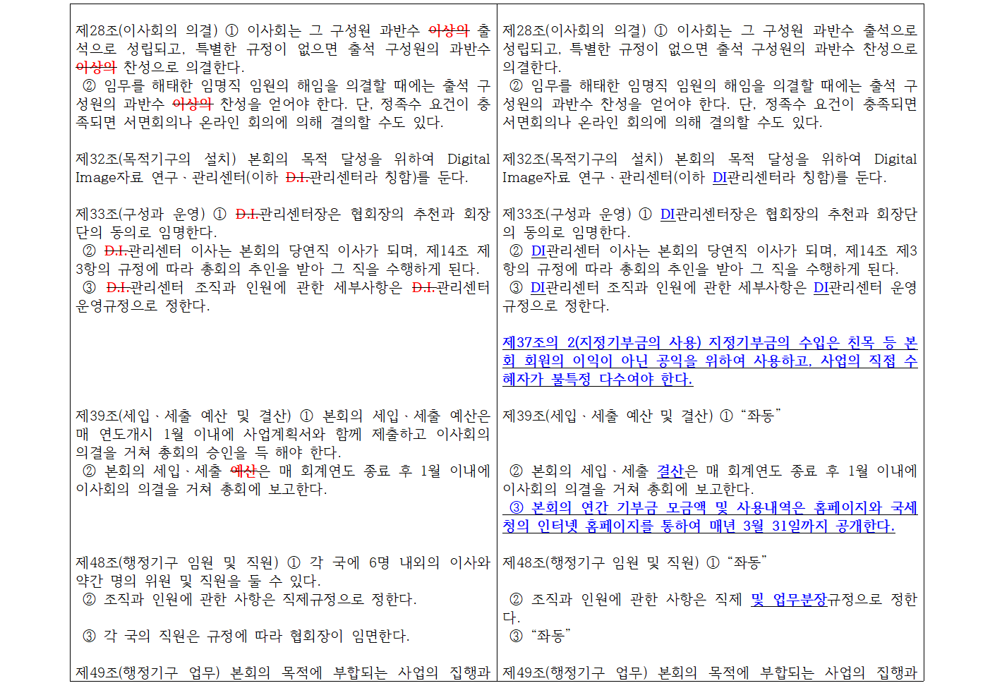 <붙임> (사)한국디지털사진가협회 정관 개정(안) 신구대비표