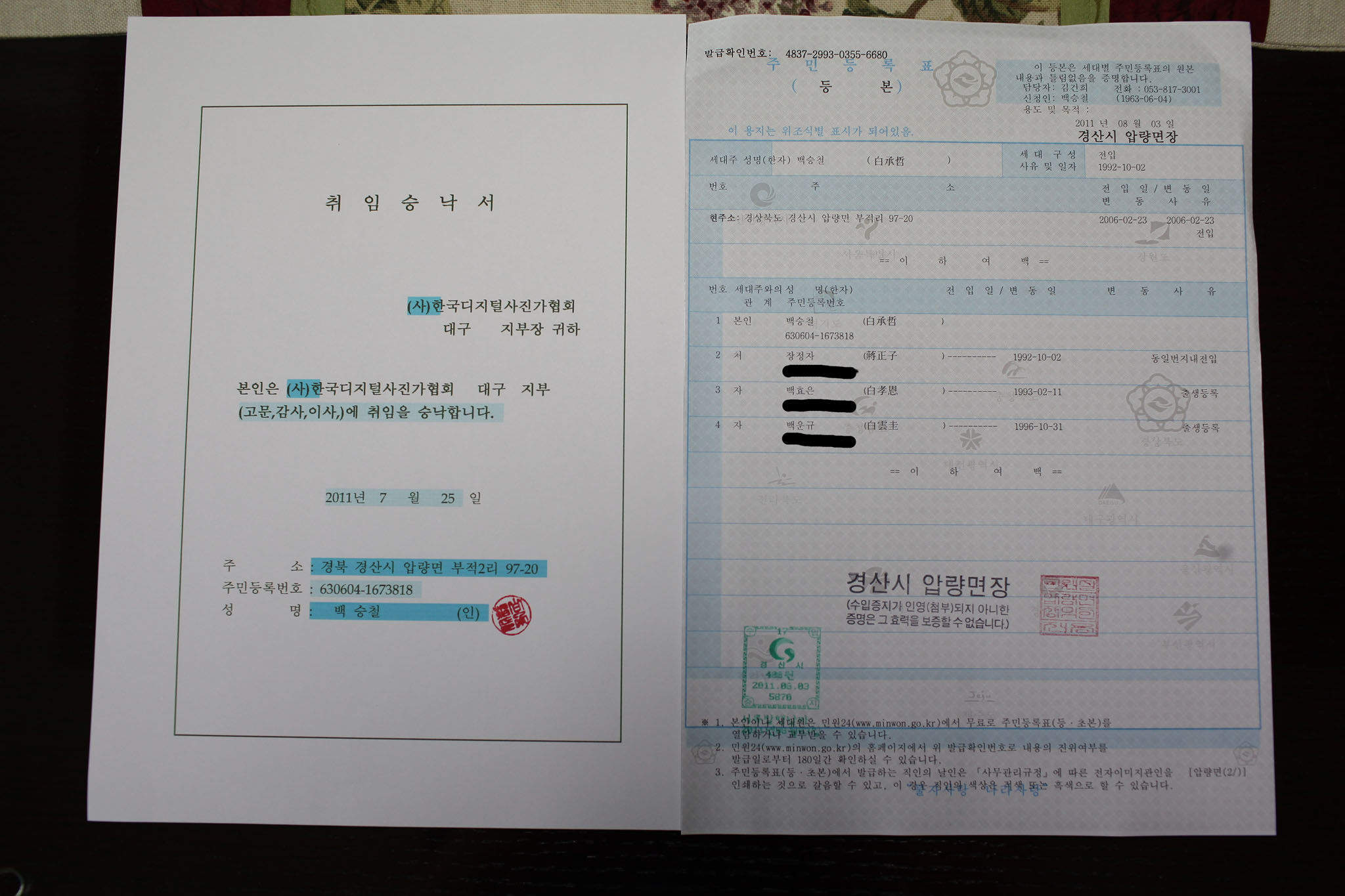 취임승낙서입니다..