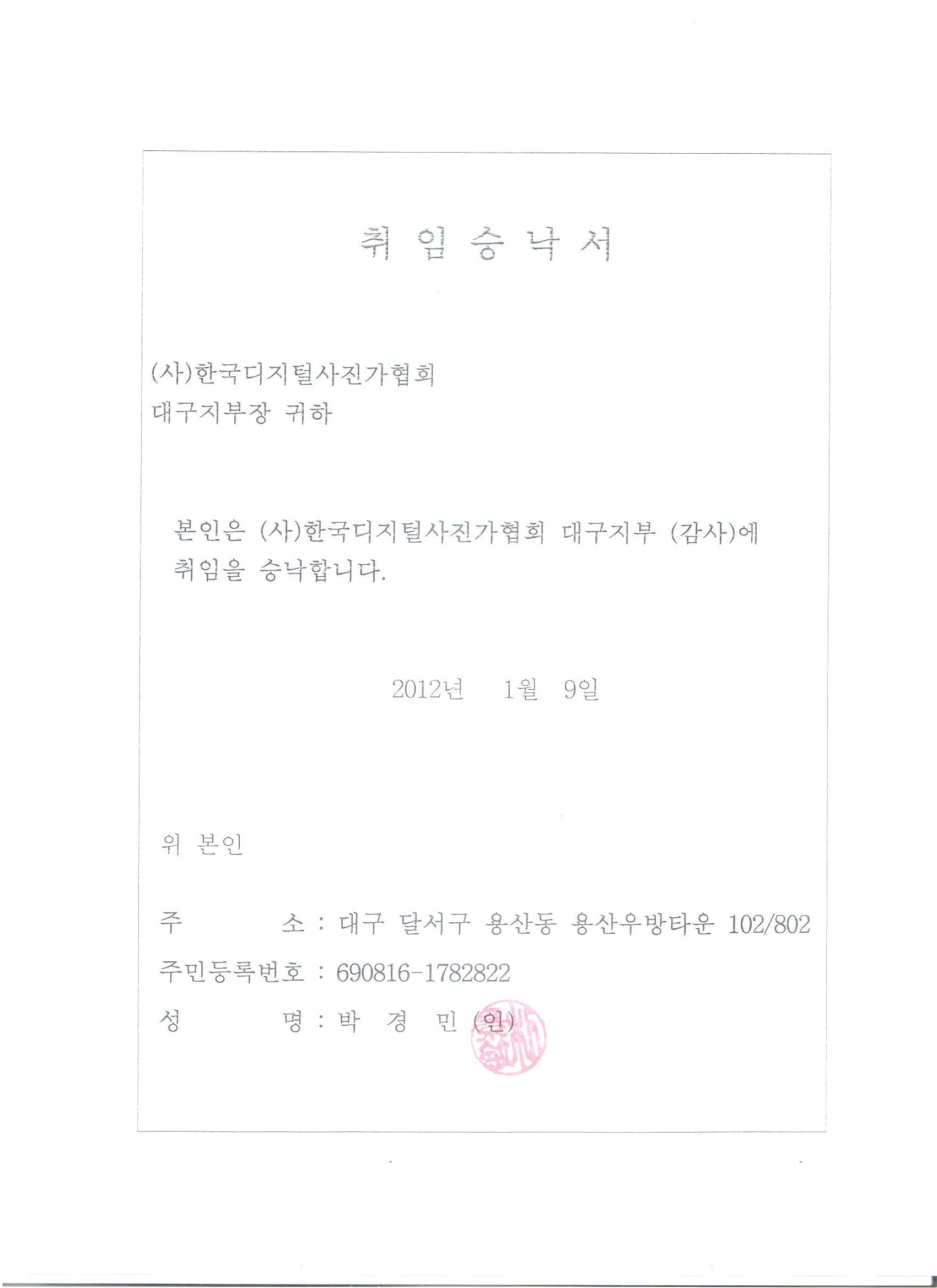 취임승낙서