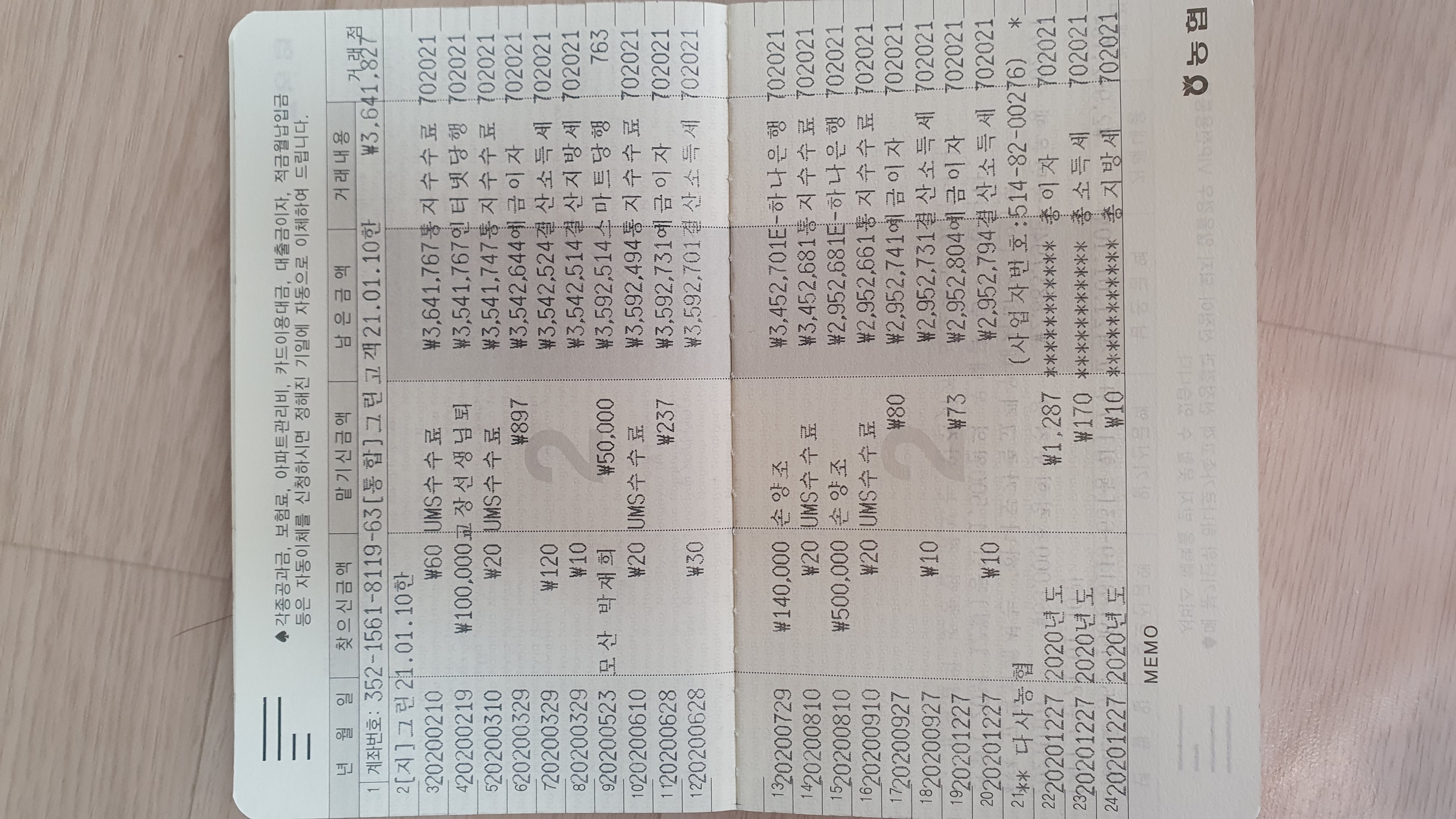 총무개인통장에서 협회송금후