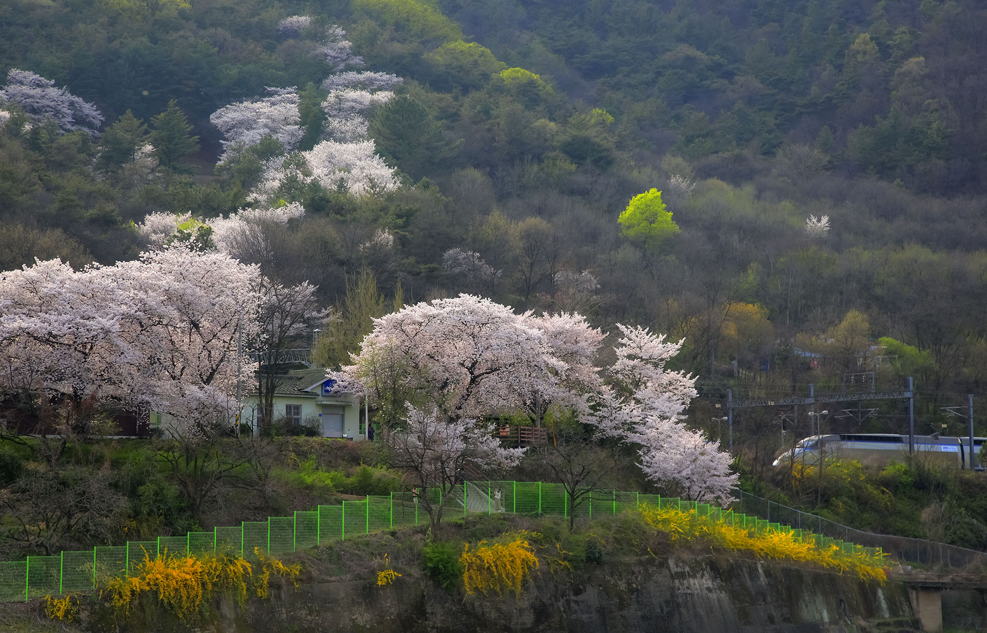 열차만 꽃향기를 실고 달린다