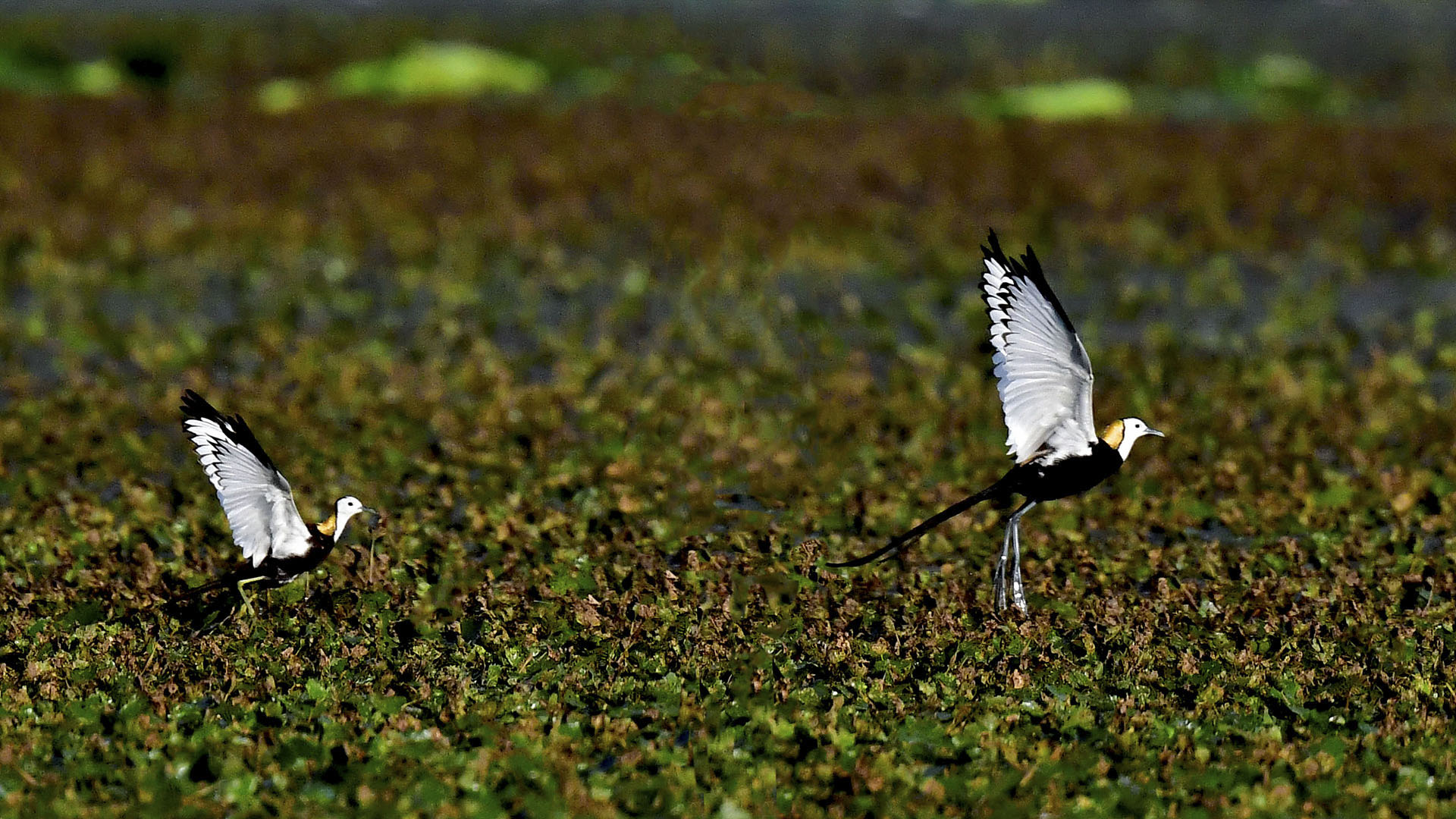 왼쪽 수컷 물꿩은 암컷 보다 조금 작으며 오른쪽 암컷은 수컷보다 크답니다.