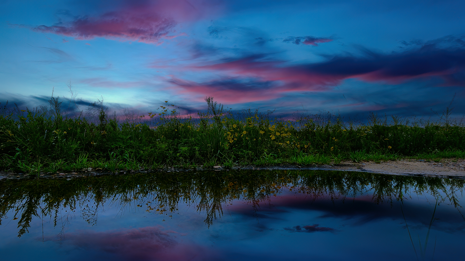 비 온 후 생겨난 작은 웅덩이에 작은 우주가 생겼습니다