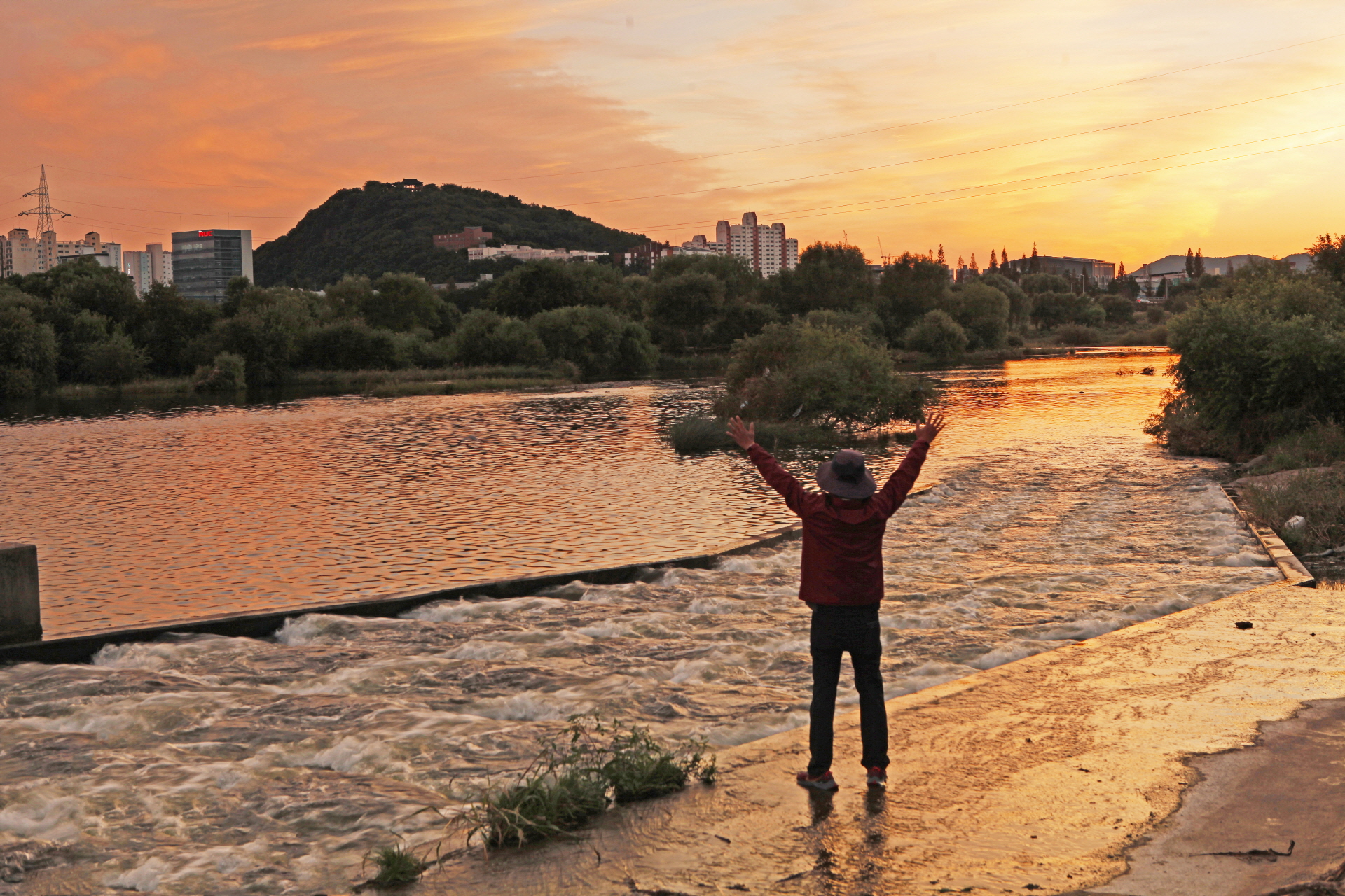 금호강에서 바라보는 저녁노을이 아름다웠습니다.