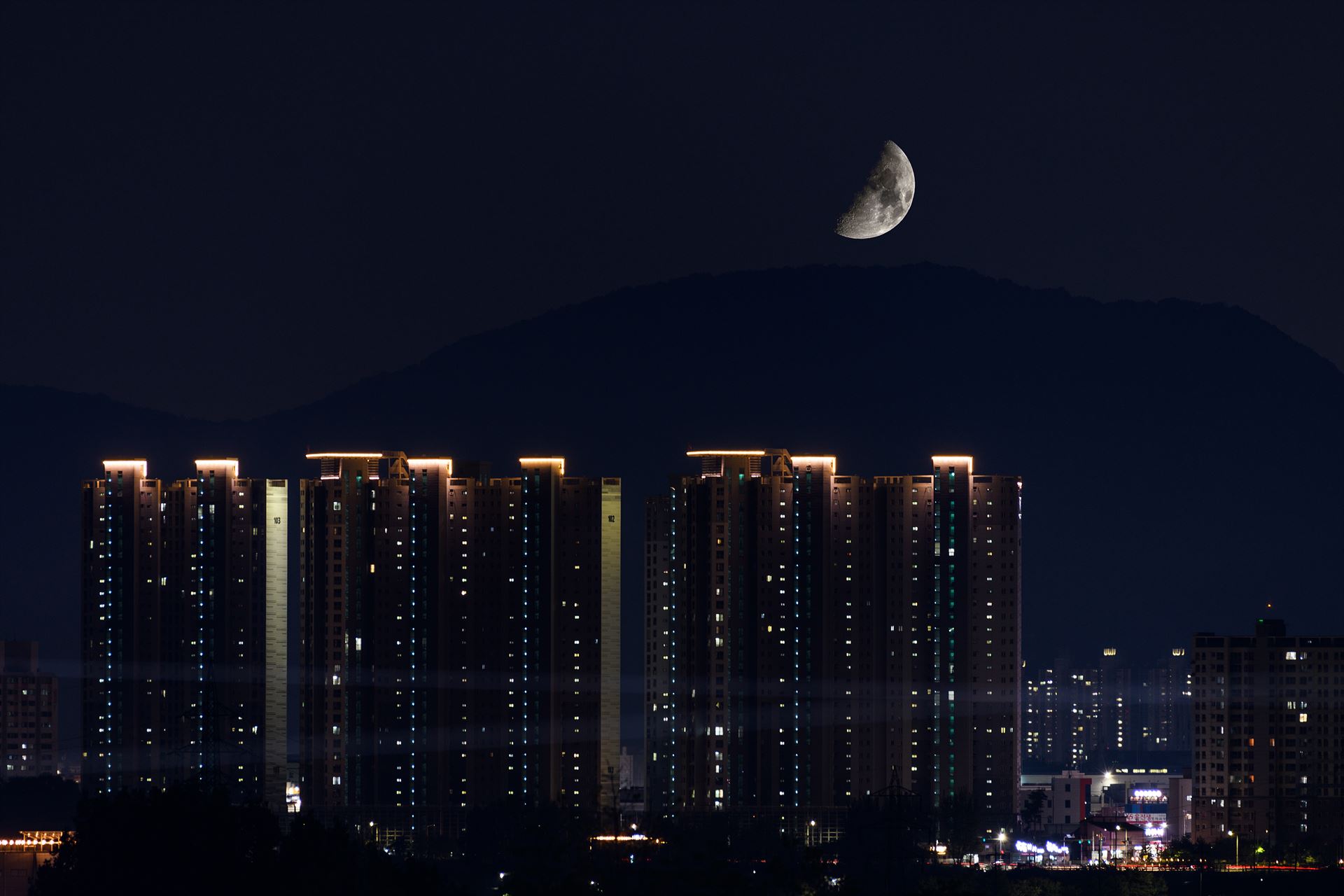 도시의 아파트와 반달