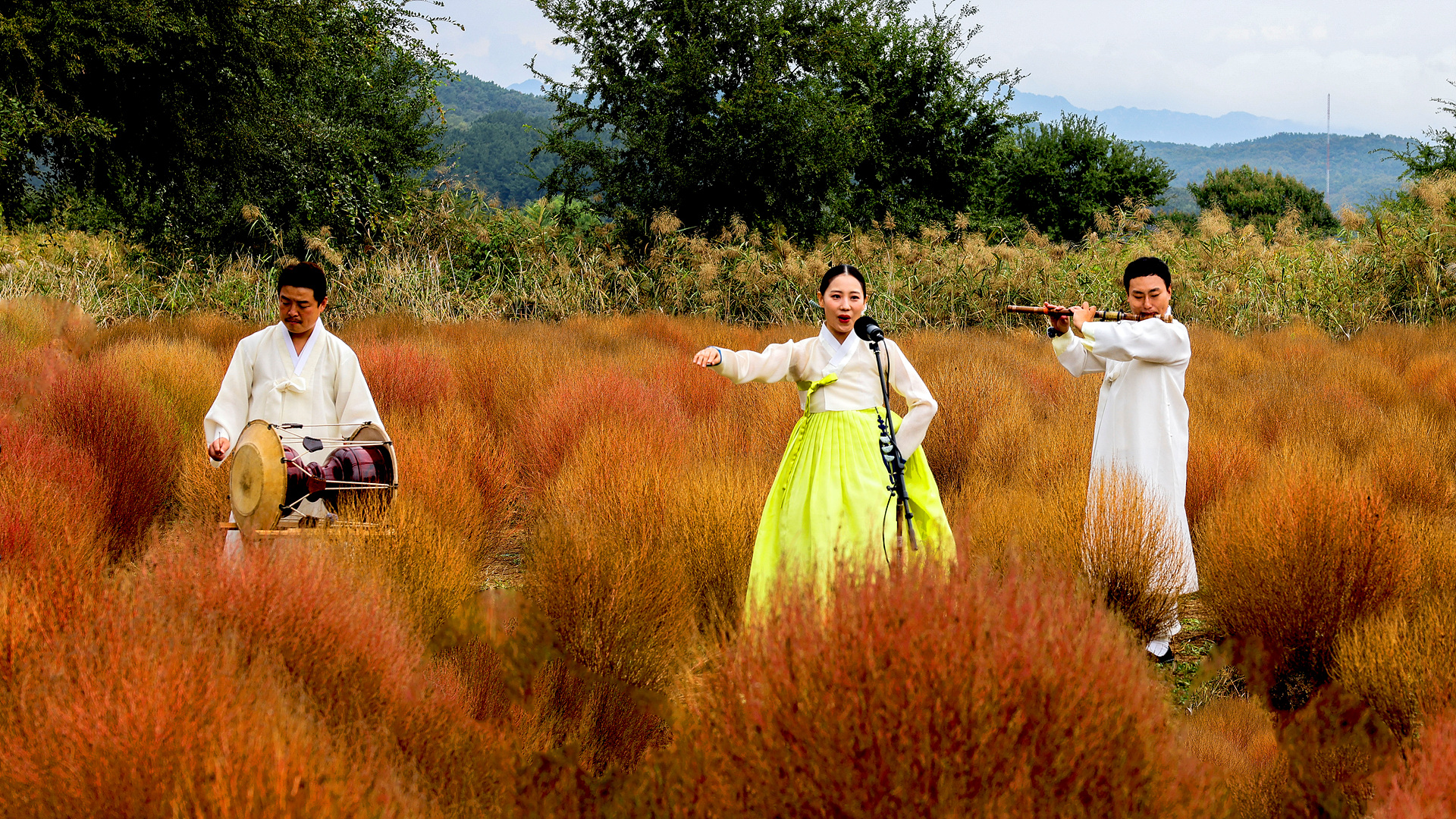 아침 일찍 하중도 댑싸리정원에서 우리가락을 부르는 모습을 담게 해 주신 연출자님 고맙습니다.