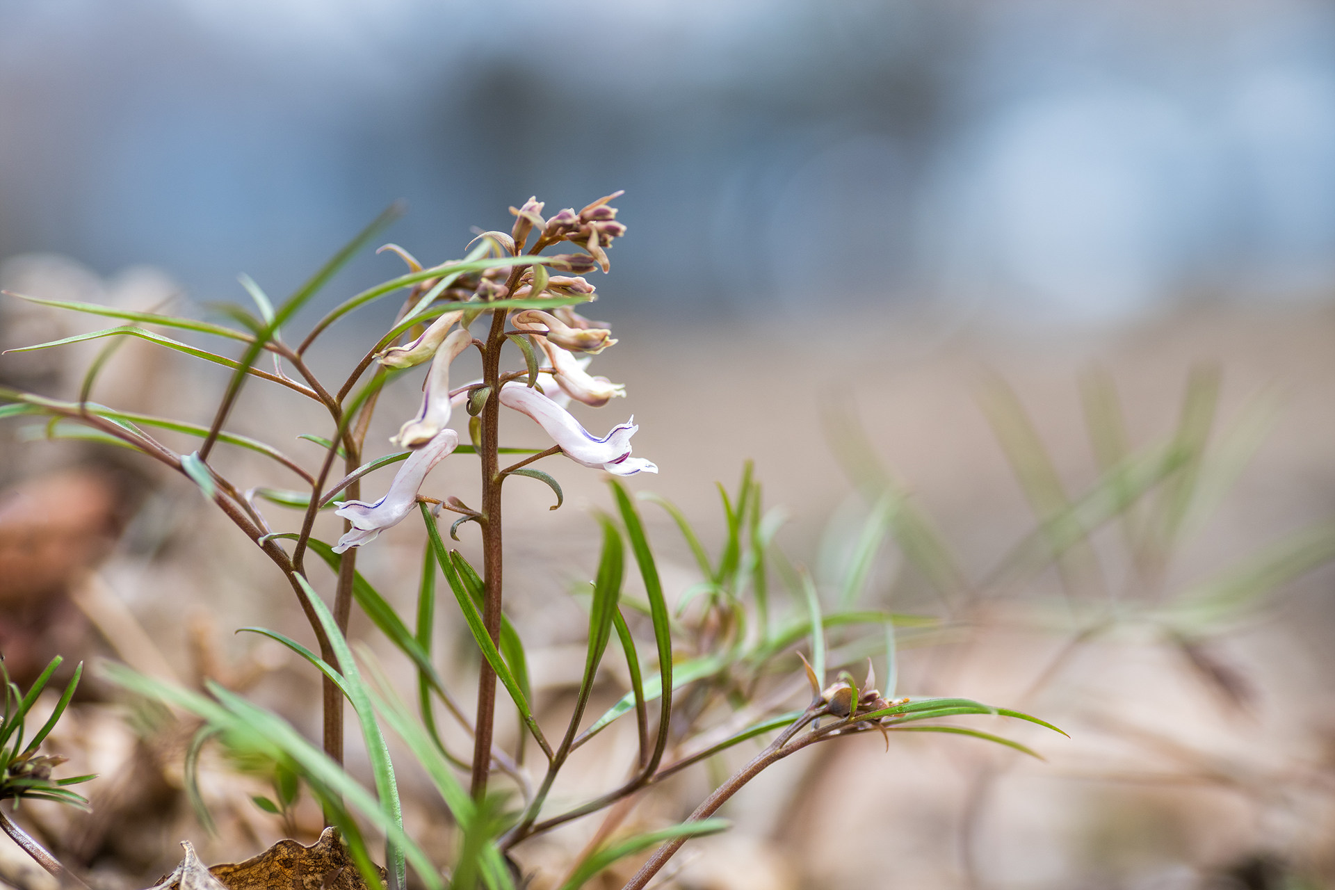 3~4월 개화, 줄기끝에 6~28개의 꽃이 총상꽃차례로 달린다. 자주빛을 띠는 백색 또는 연한 자주색을 띠고 바깥 화피편에 줄무늬 모양이 있으며 길이는 1.7~2.3cm이다.