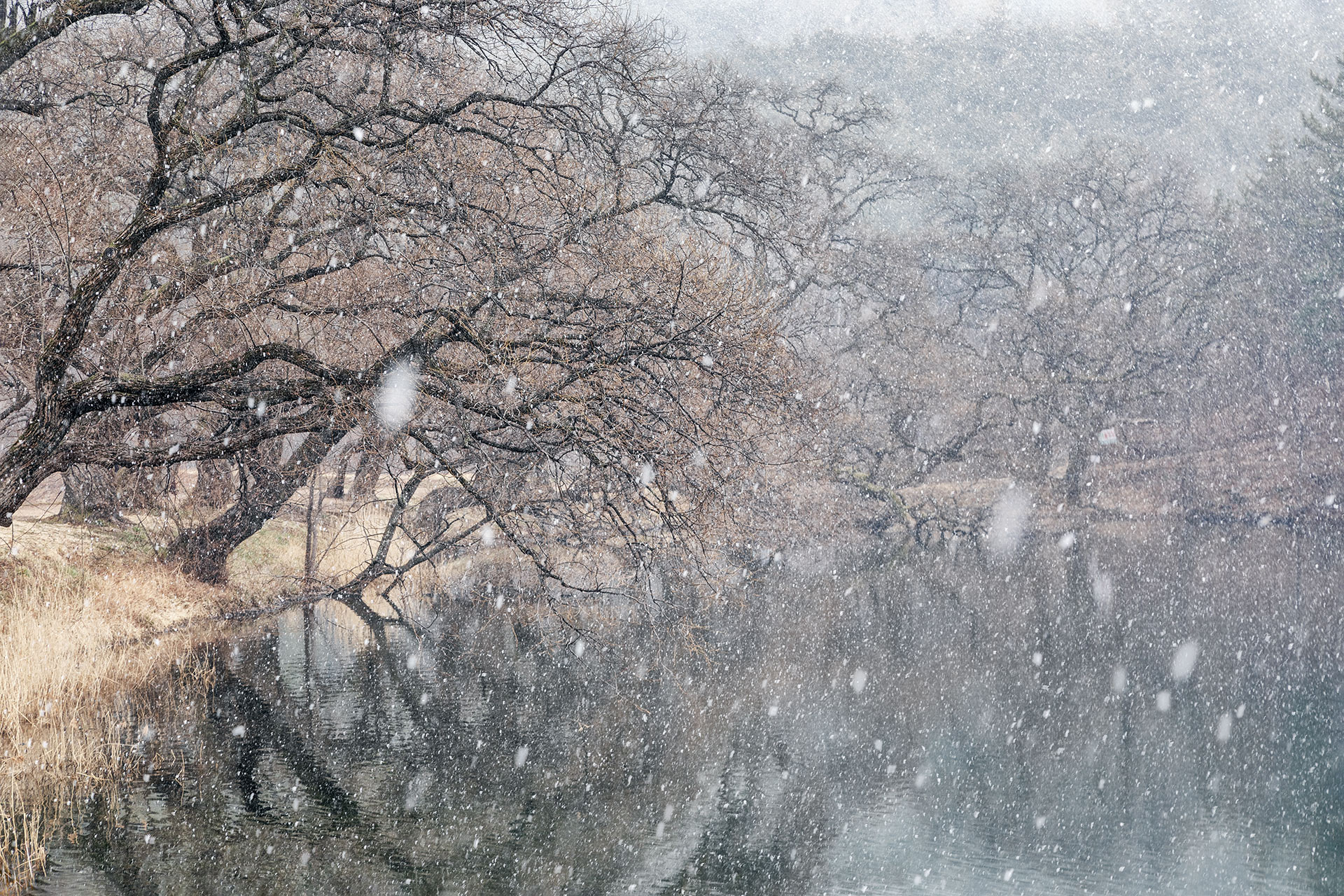 드라이브중 눈이내리네  반곡지 설경이 생각나