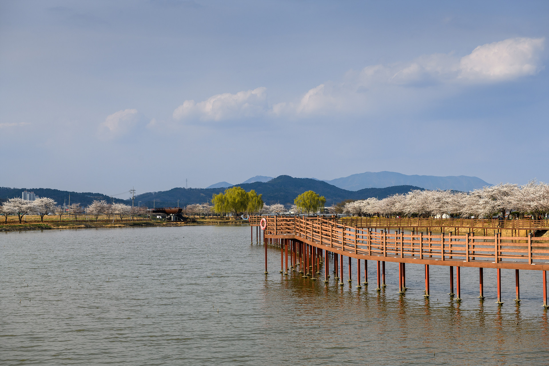 철새들이 떠나간 구미 지산샛강생태공원은 벚꽃이 한창입니다.