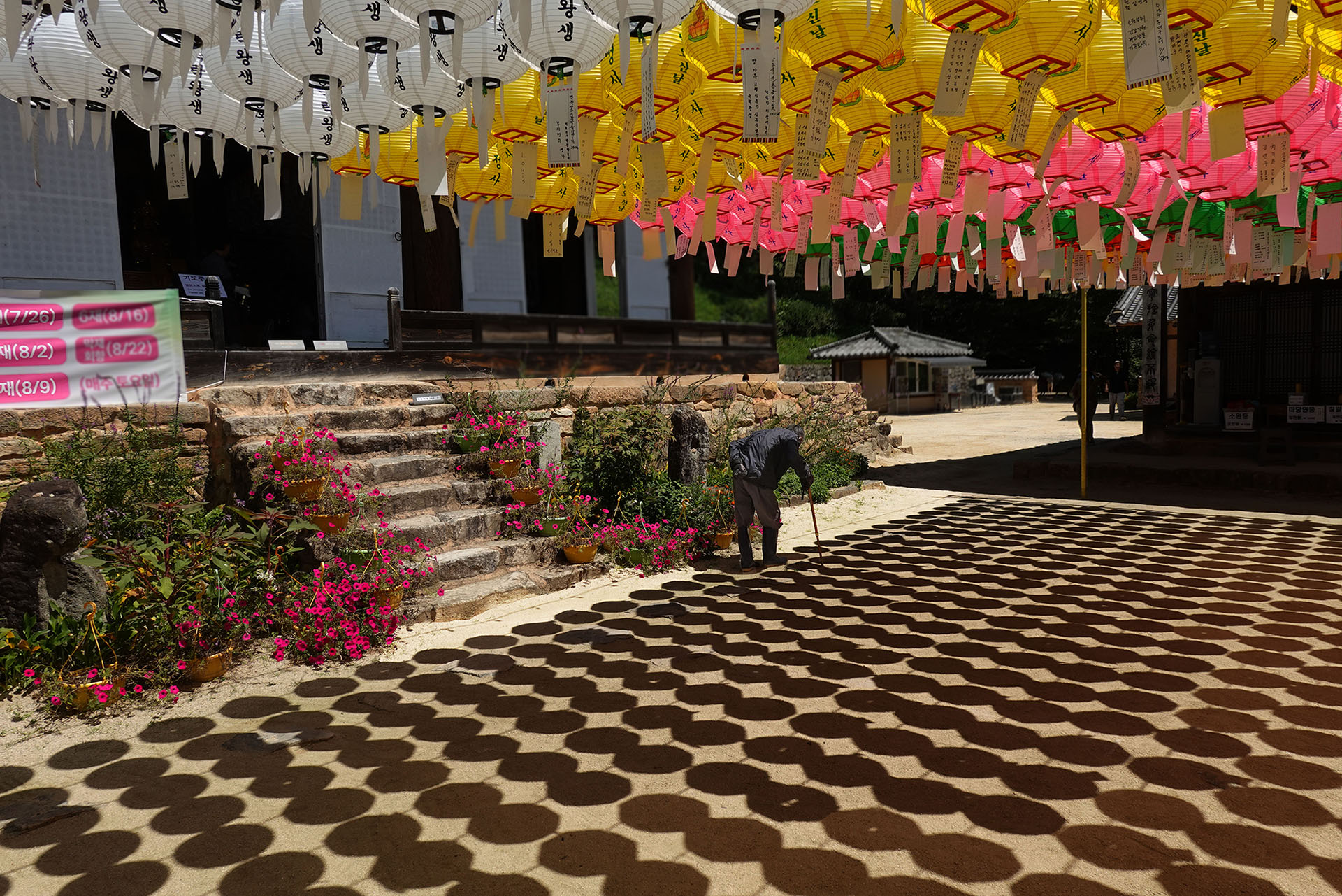 열기 이글거리는 법당앞을 한 걸음 한 걸은을 옮기는