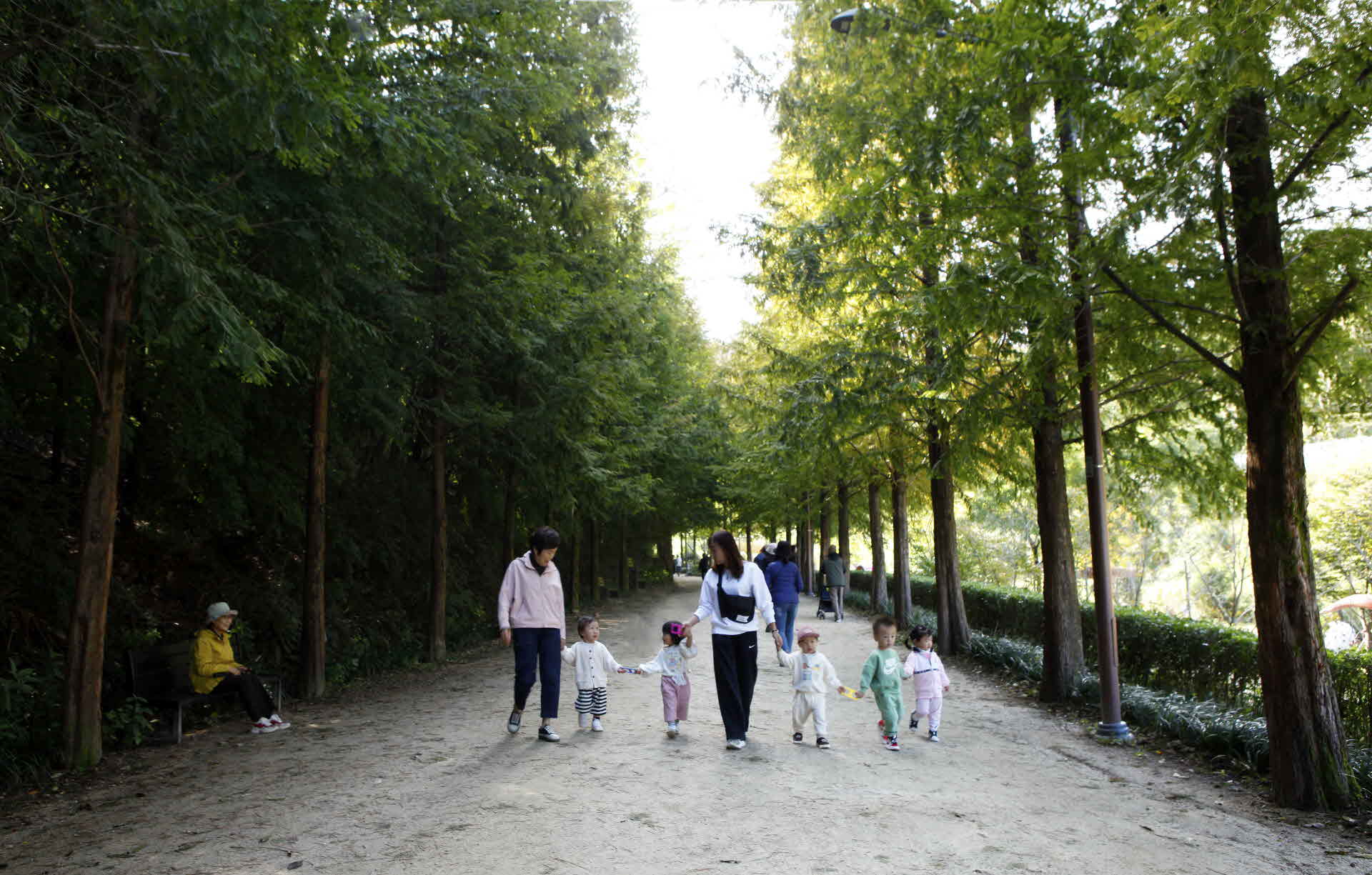고산골 메타세콰이아 길에 꼬맹이들이 나들이를 나왔네요.