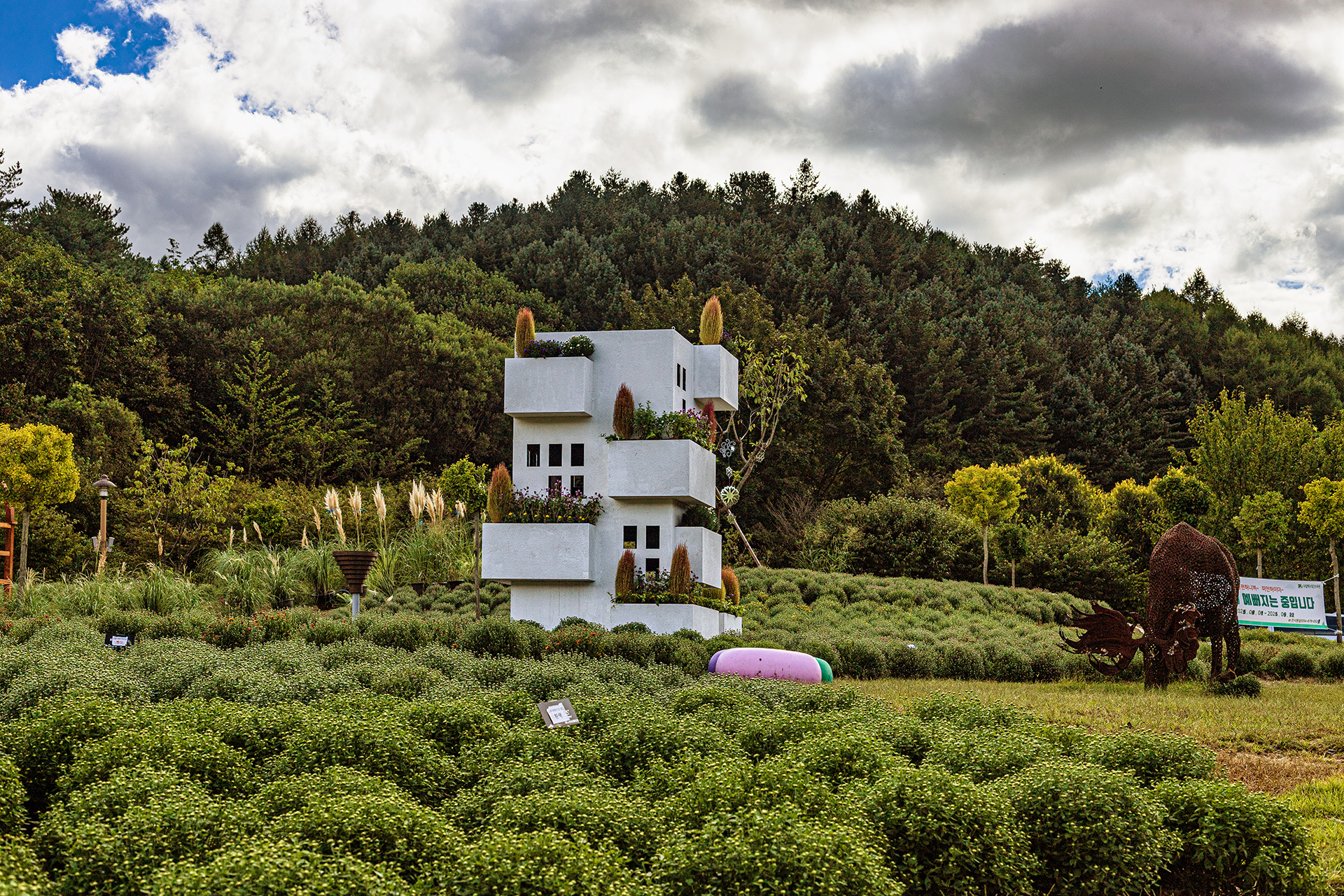 넓디넓은 정원에 국화가 봉오리를 맺는다.