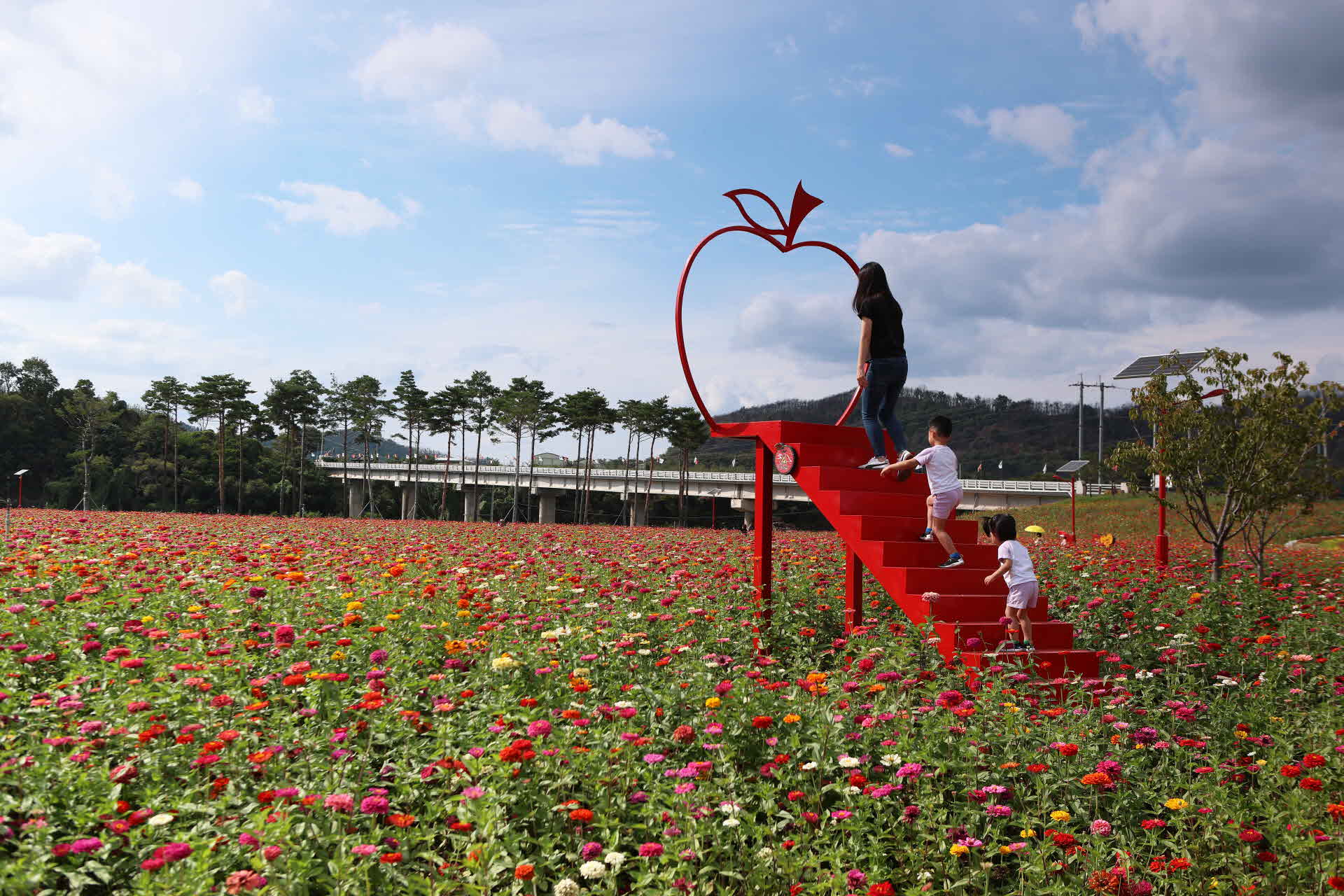 엄마따라 꼬맹이들이 사진 찍기 위해 높은 계단을 오르고 있네요.