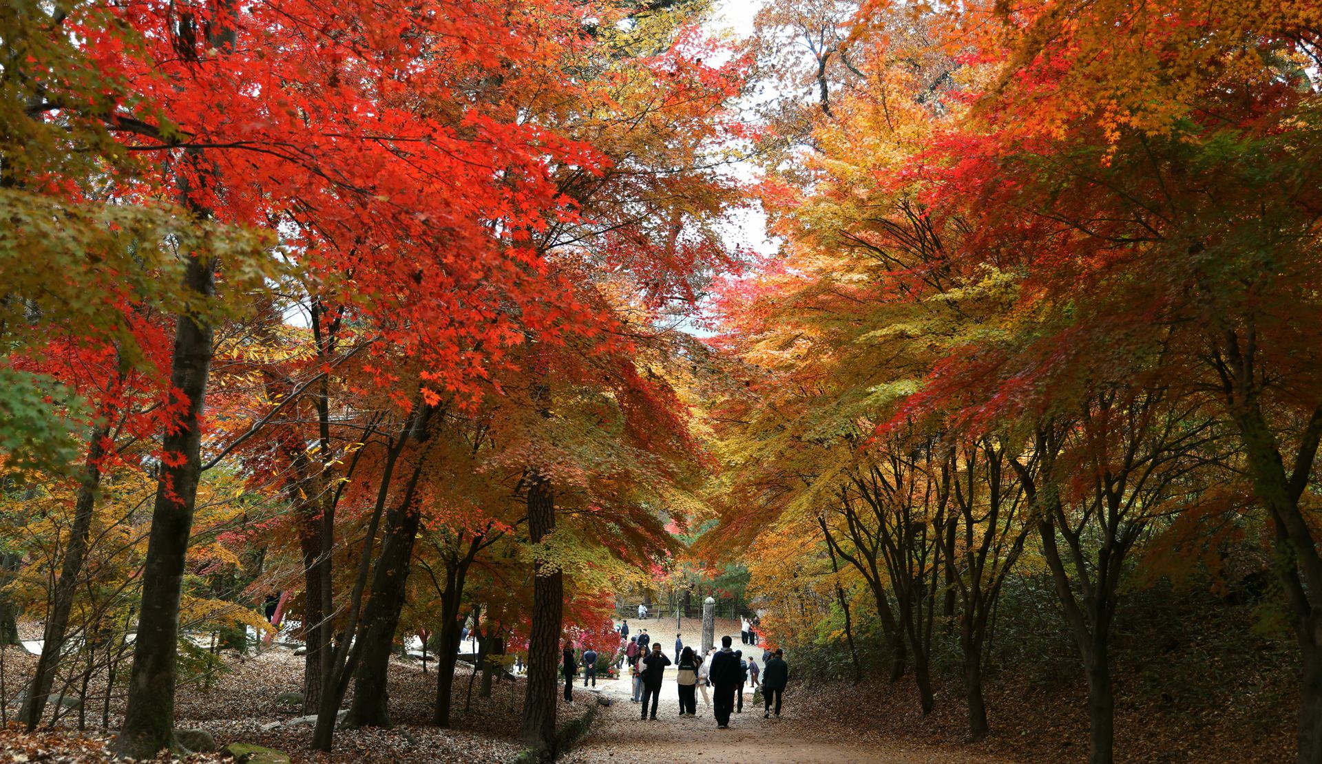 오색 단풍으로 물든 해인사 일주문 앞