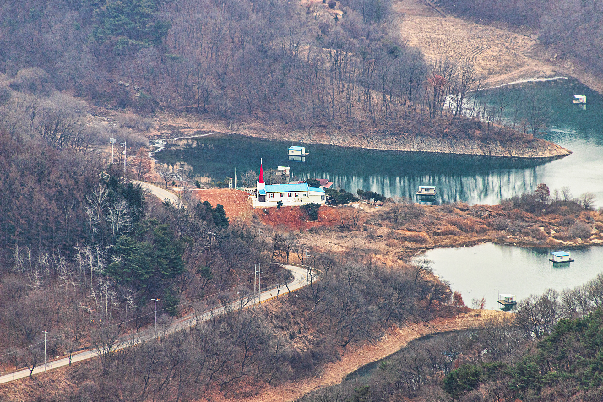 호수가 교회가 참 아름답다.