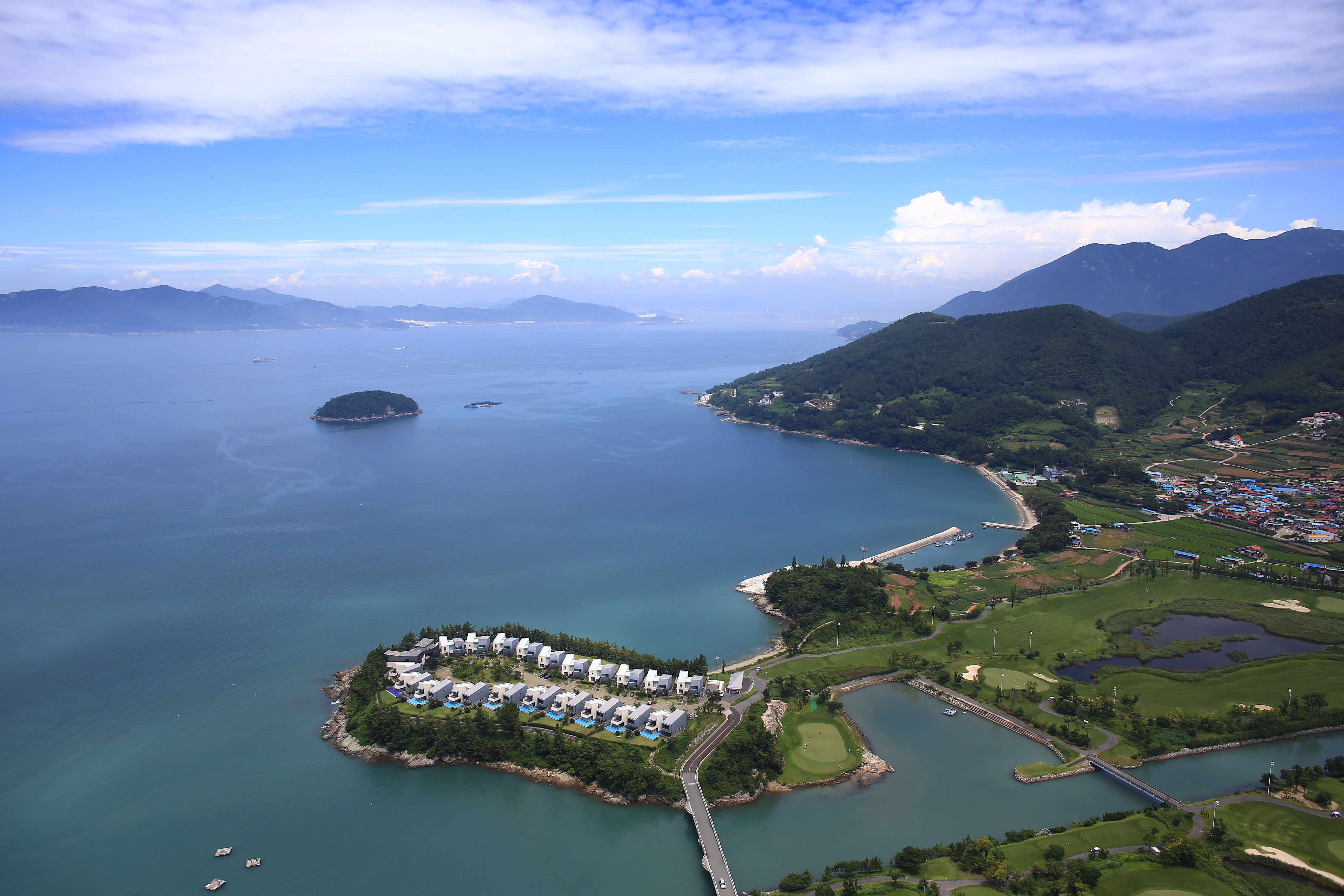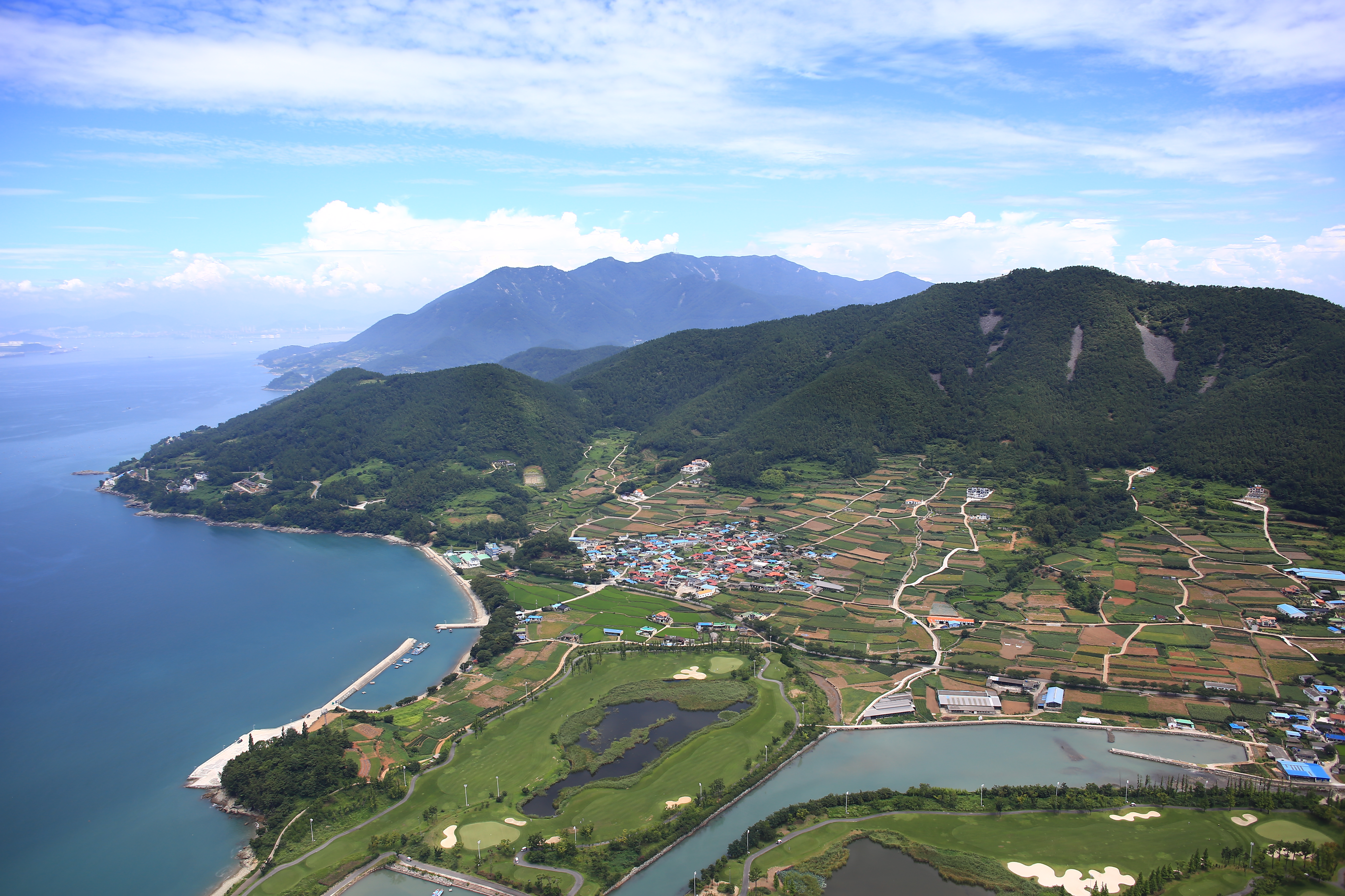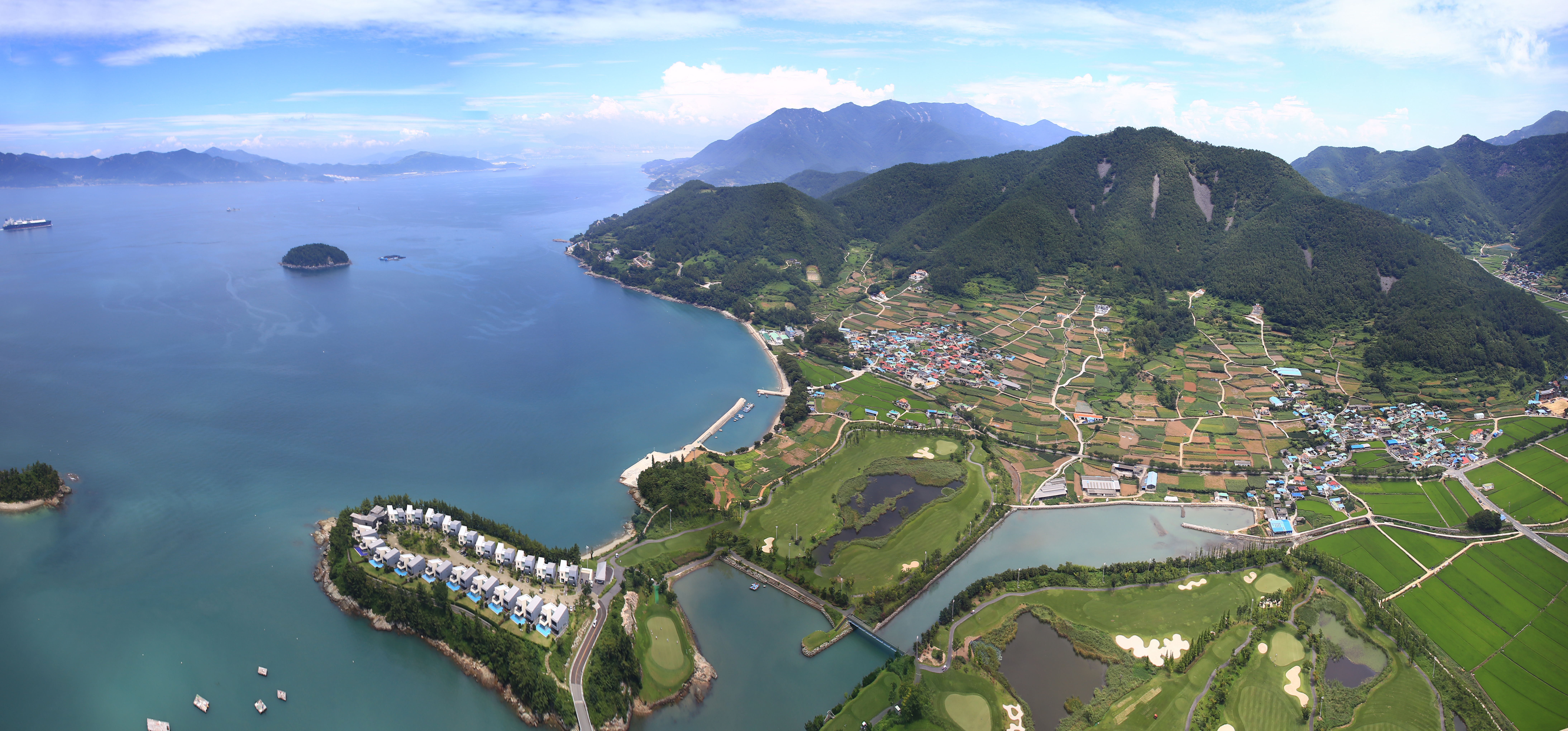 남해 남면 구미동 항포구 와 힐튼남해CC 리조트 모습..