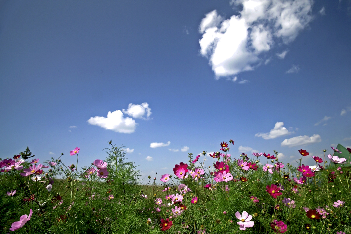 때이른 코스모스가 가을을 재촉하다.