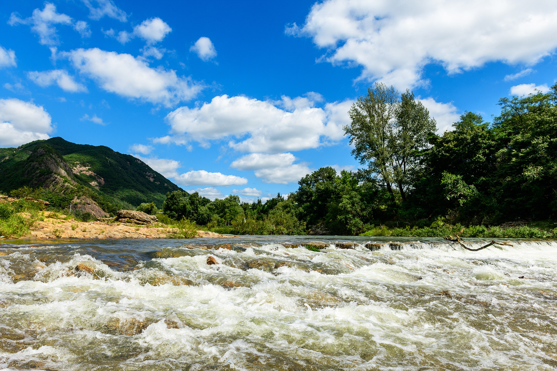 가을 장마로 물살이 세차게 흐릅니다.