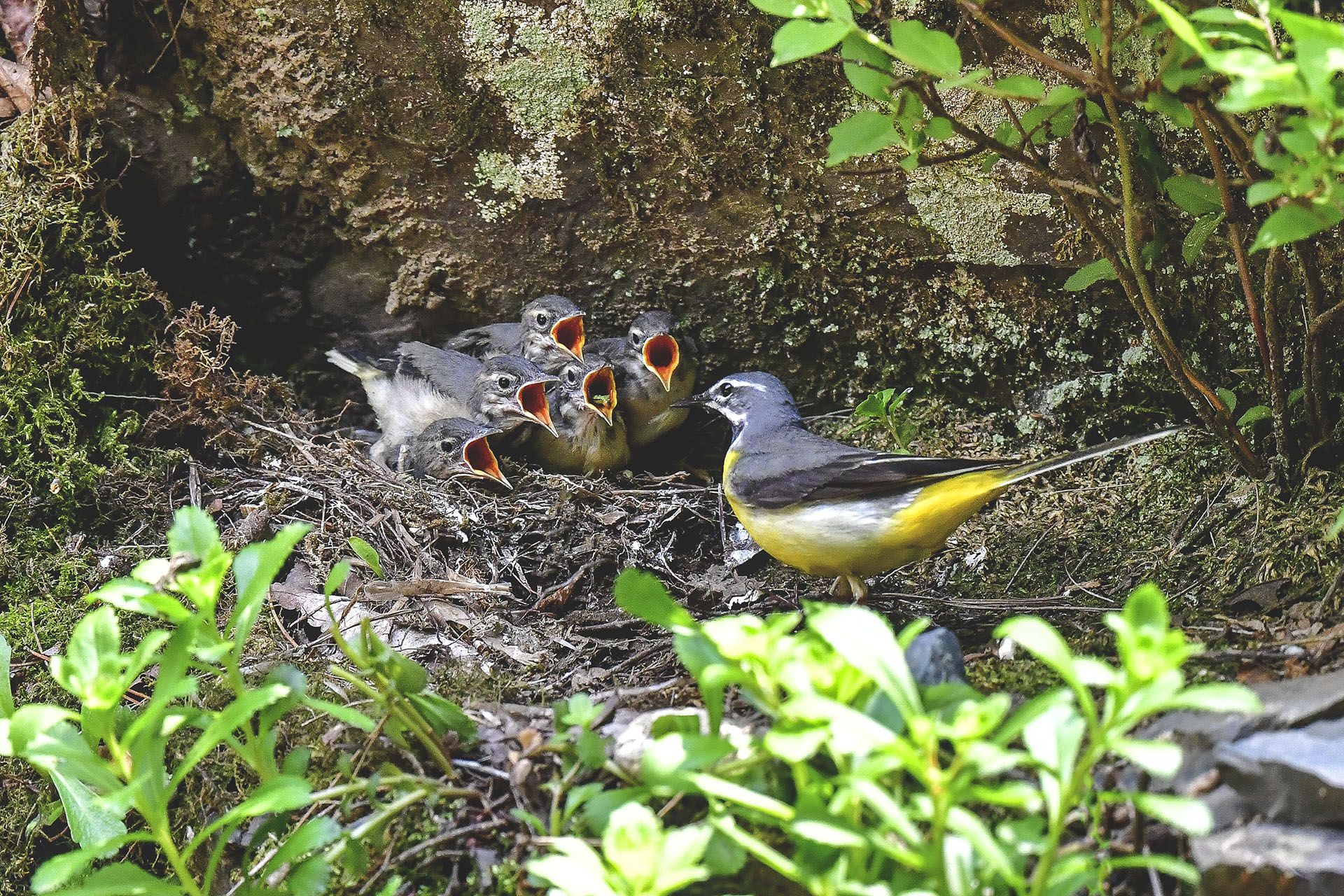 노랑할미새 육추모습