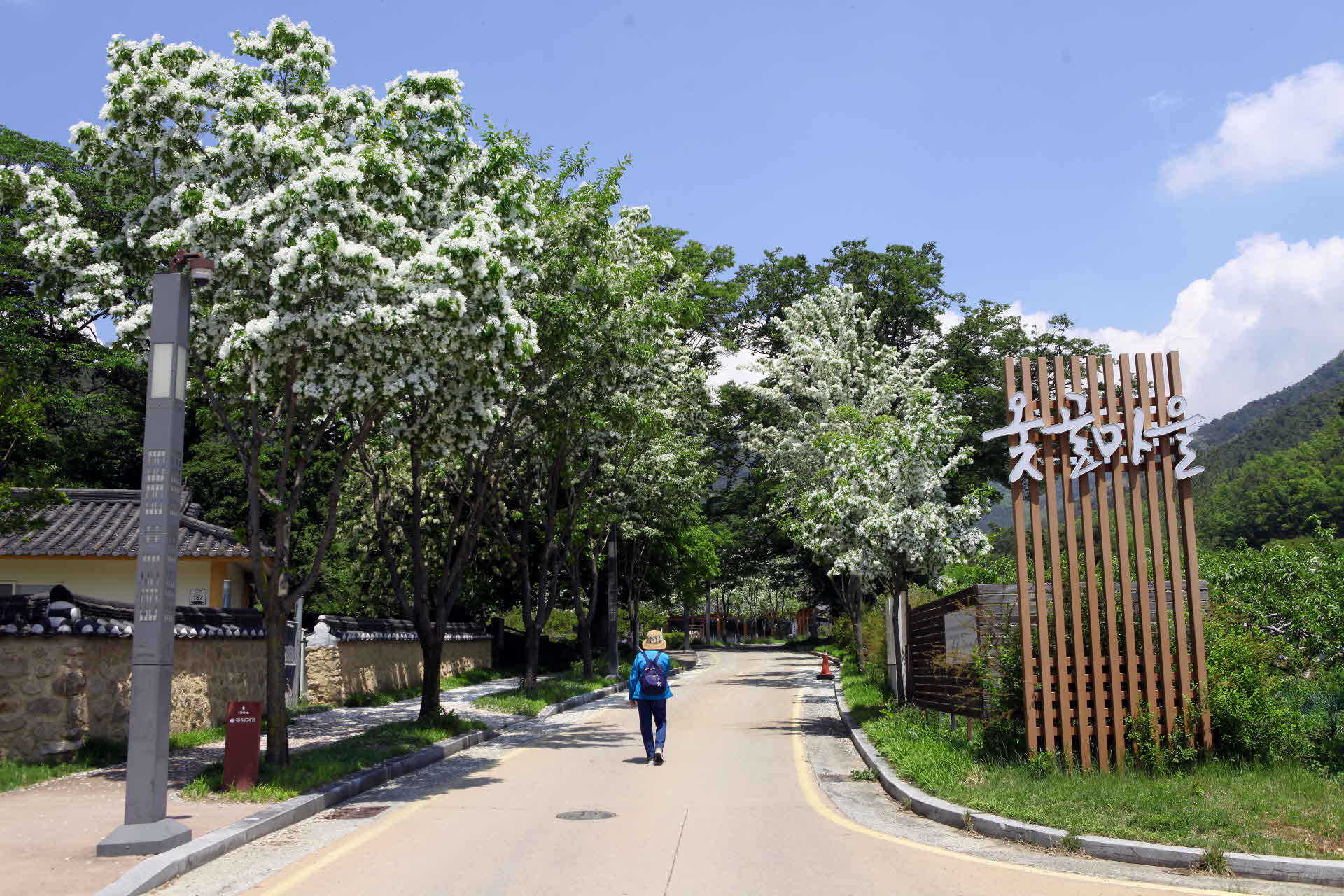 이팝나무가 피어있는 옻골마을 입구입니다.
