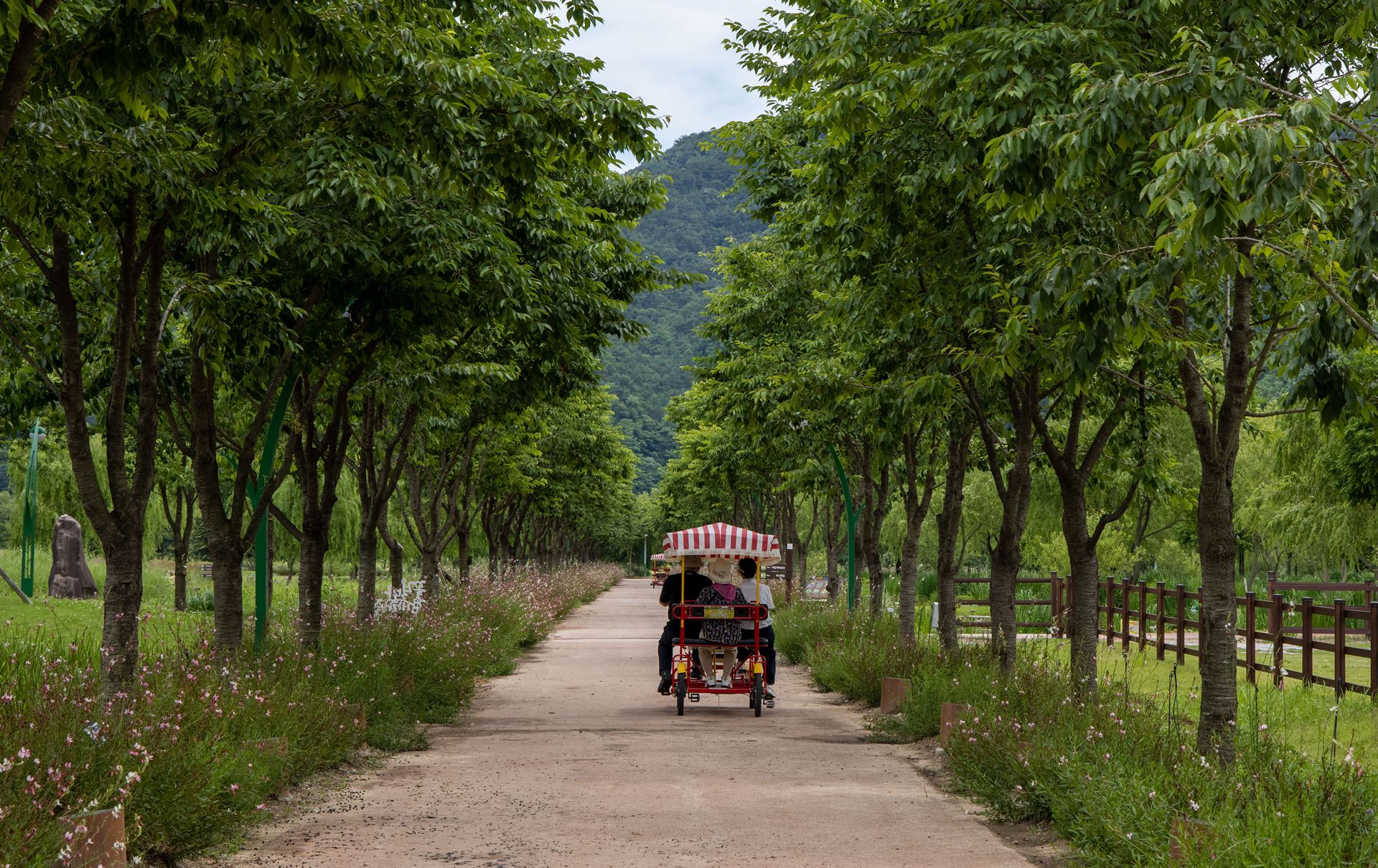 창포원 공원에서 노부부와 자전거 타는 모습이 정겹습니다