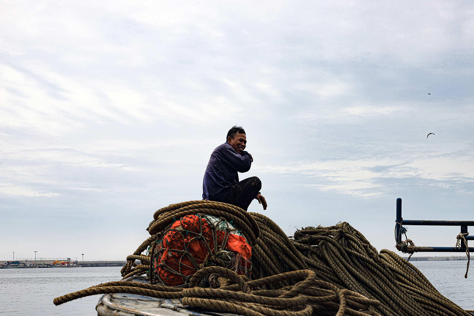 외국인 근로자가 휴식을 취하며 사진을 한 장 담아달라고 한다.