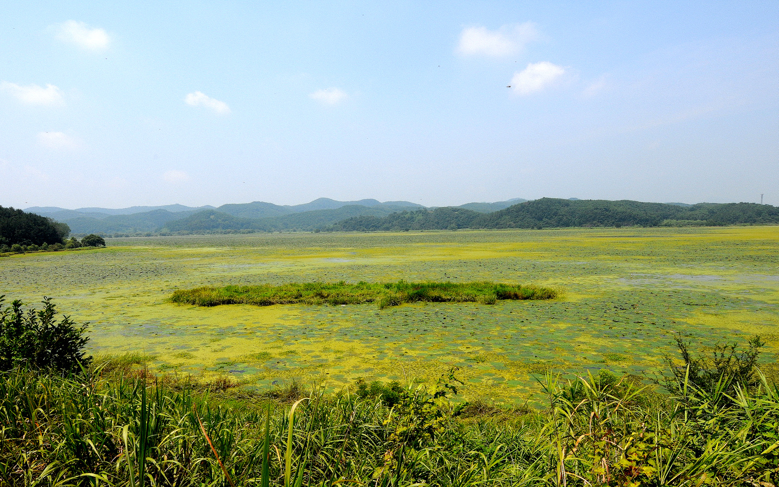 수초가 늪을 완전점령 물색은 간곳없습니다..