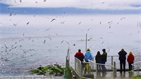 연어떼 구경하는 사람들