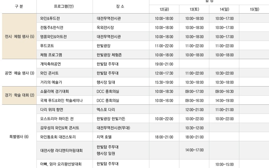 2012대전 와인 &푸드 전 프로그램