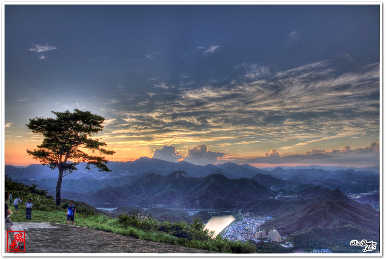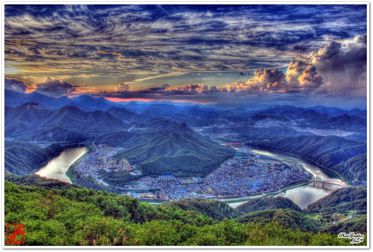 양백산에서 바라본 단양시내와 일몰입니다...