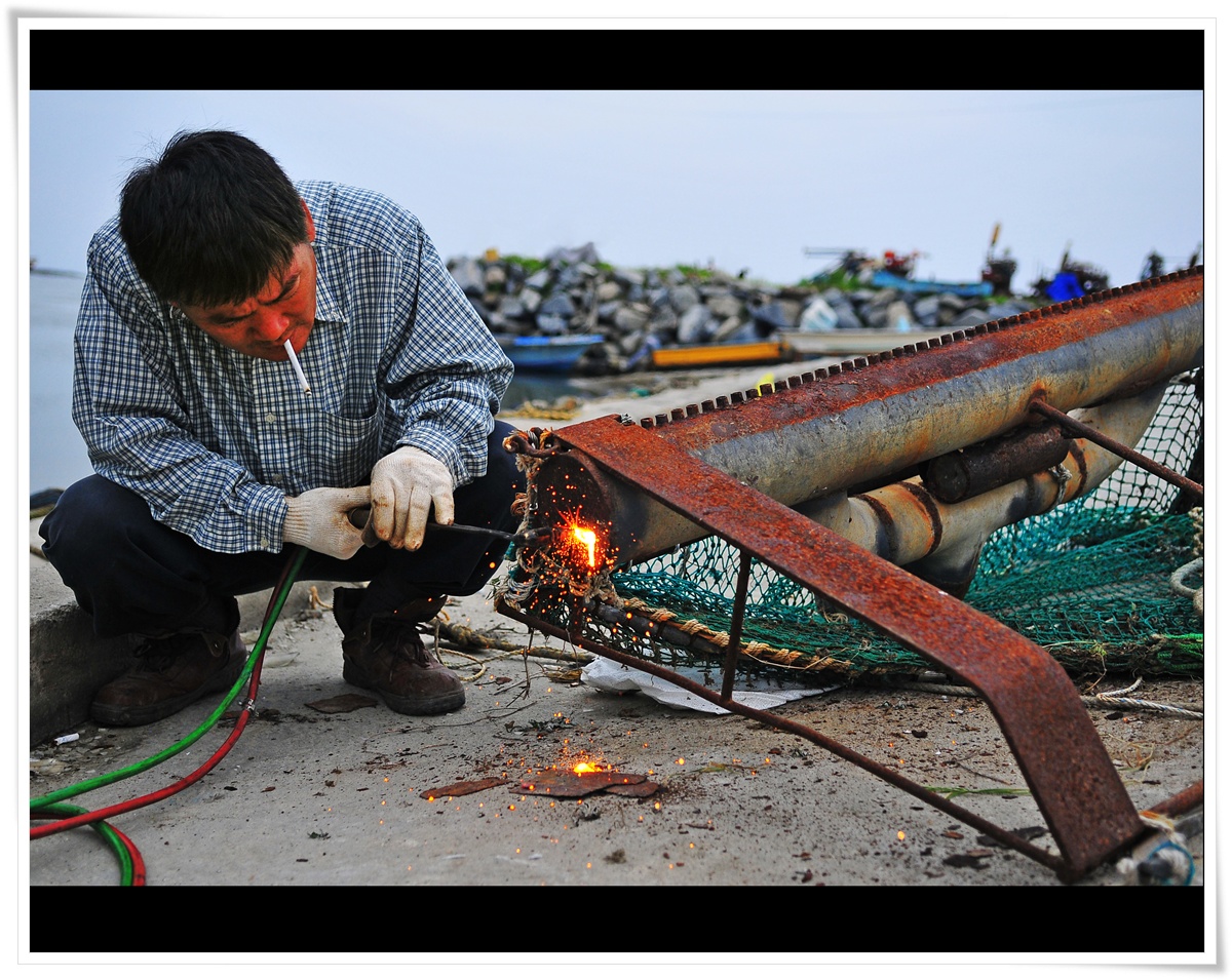 용접기에 불을 댕기고~~~ 배에서 작업에 필요한 물품을 만드는 모습 ^^(