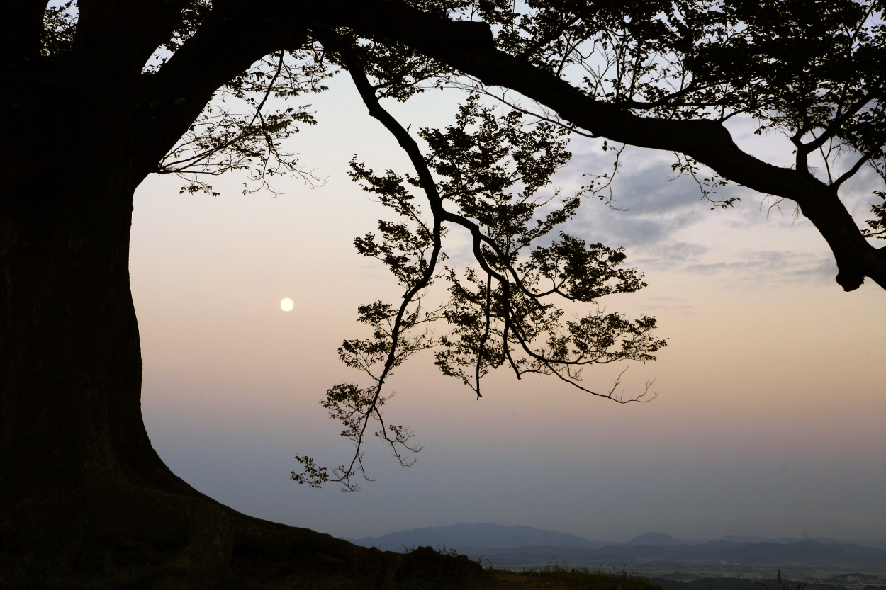 고향집에 다니러 갔다가 들른 성흥산성 멋진 일몰을 기대했으나 구름이 짙게 드리워 아쉬움만 남기고 느티나무 사이로 보름달이 유난히 아름답다