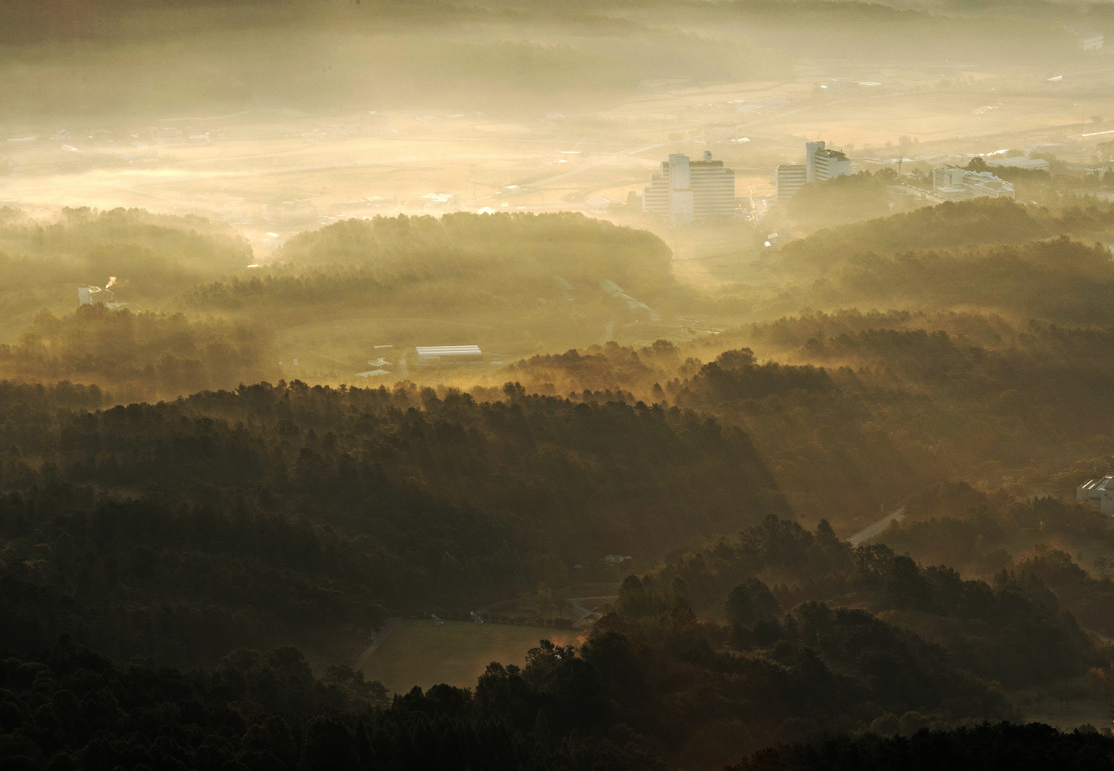 기대했던 동쪽으로부터 산을 가로지르는 운무의 흐름대신에