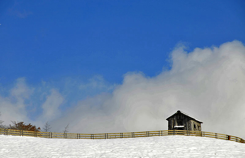 추위에 떨고있는 외딴 집