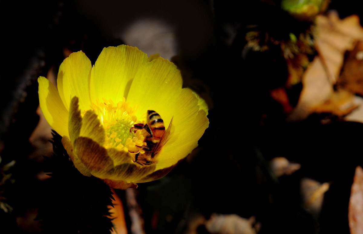 복수초 잔속에 푹 빠져버린 꿀벌