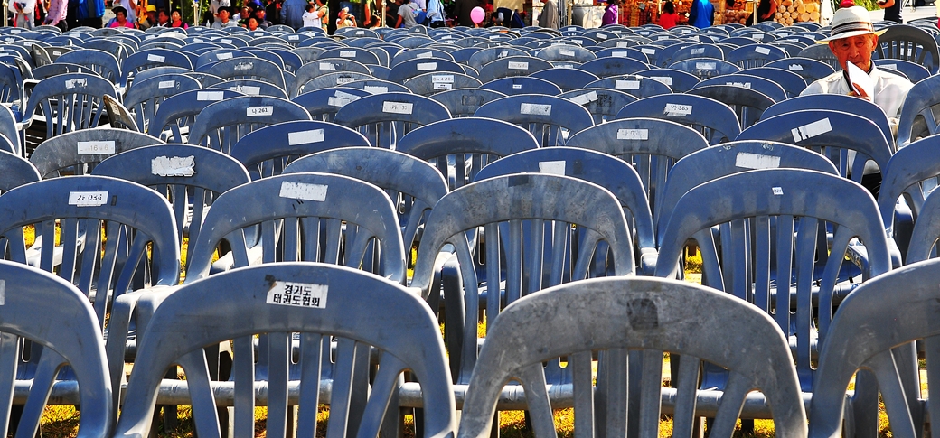 수백개의 프라스틱의자~~ 홀로 끈질기게??? 앉아 계시는 느긋한 할아버님~!