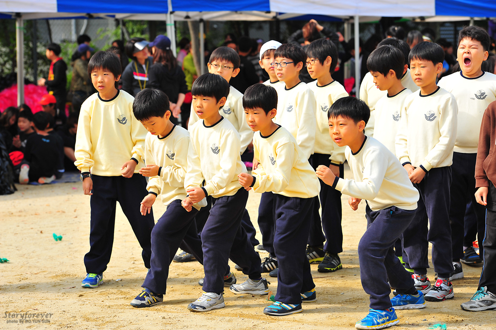 3학년 1반 남자 100m달리기 출발선에서