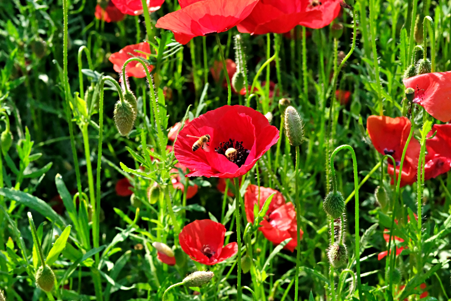 양귀비에 벌이 많이 모이네요