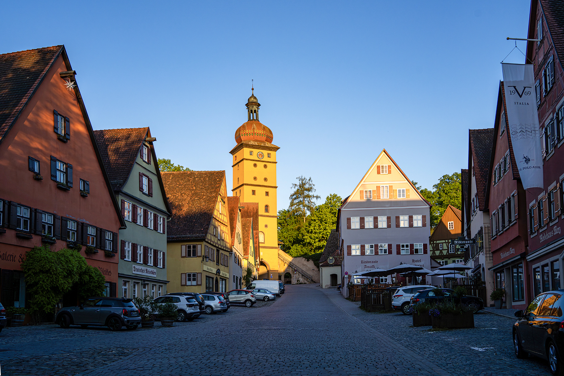 남부독일 작은 도시의 아침풍경 10세기의 모습을 간직하고있음. 집들이 파스텔톤으로 알록달록.