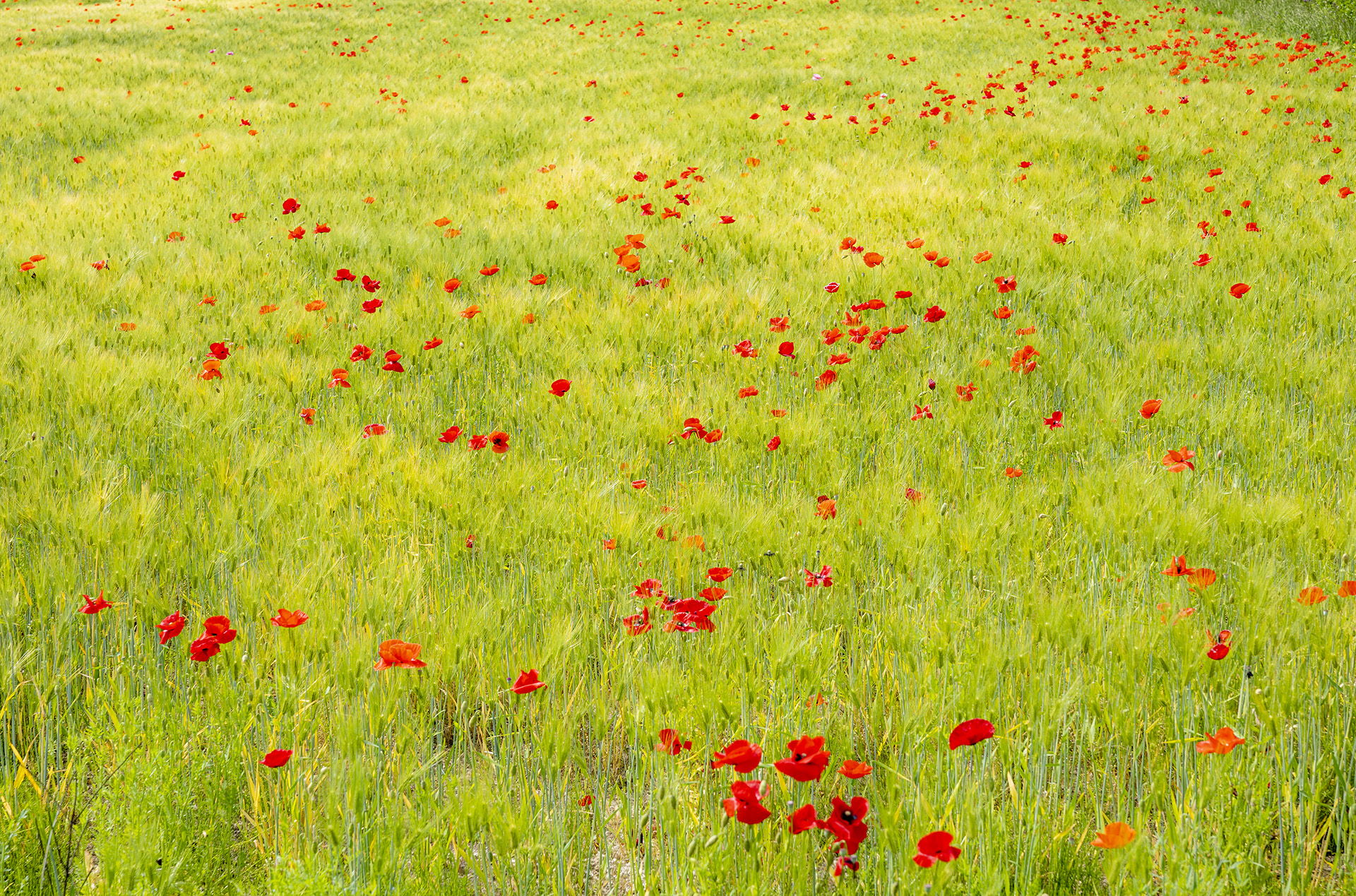 양귀비가 보리밭사이에서