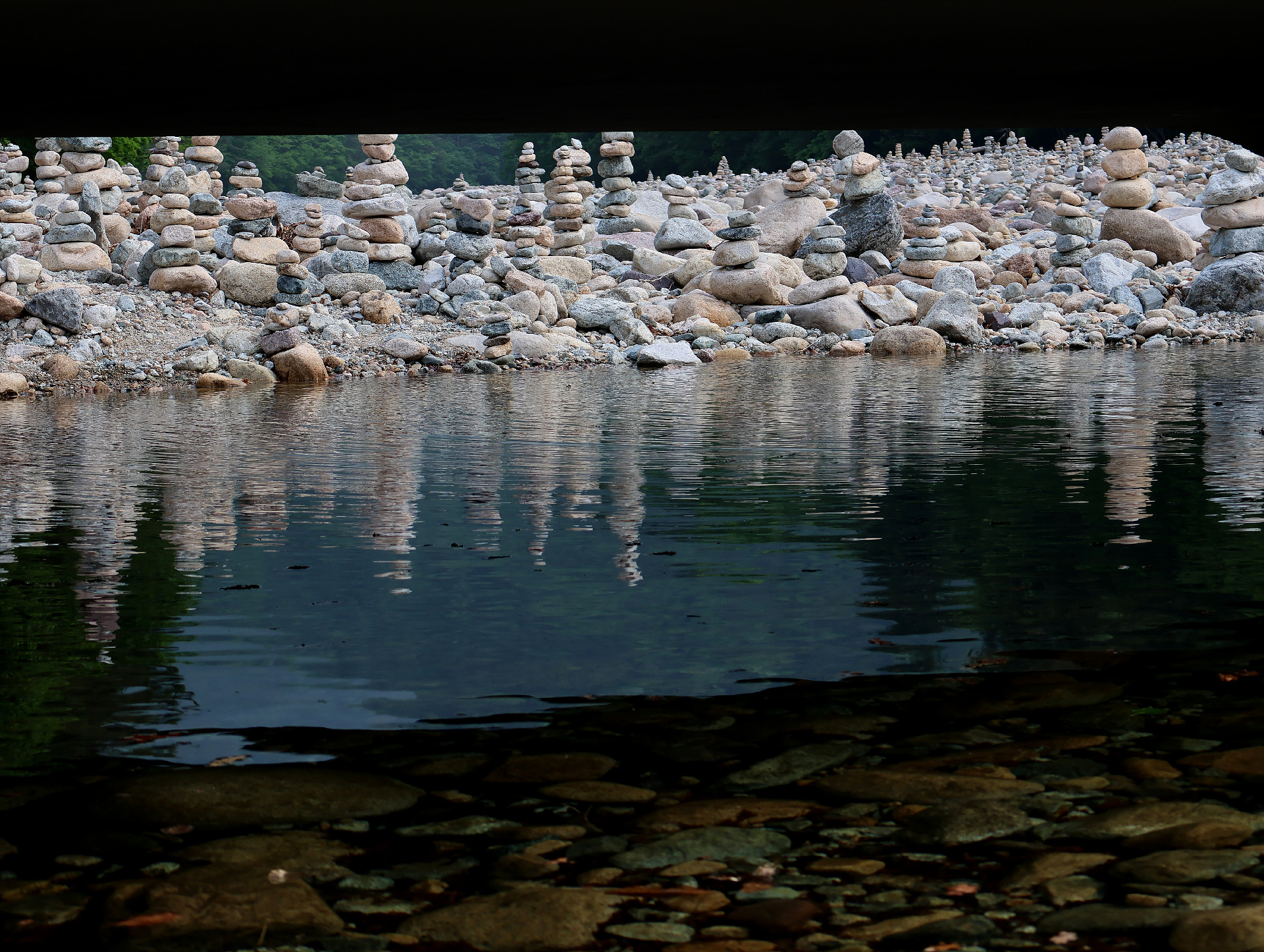 계곡에는 물 대신 돌 탑들이 가득합니다