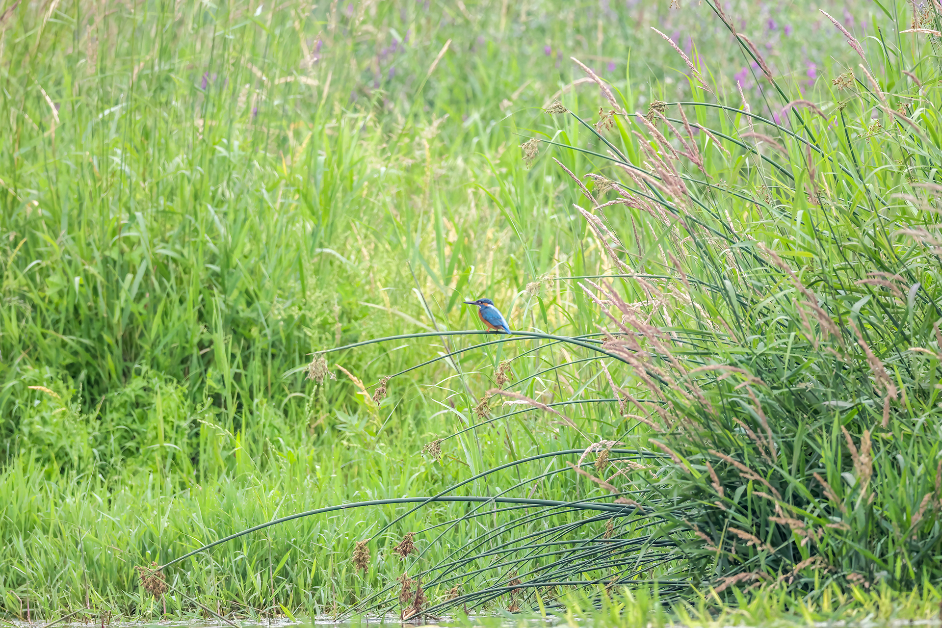물총새가 풀숲에서 무언가를 지켜보네요.